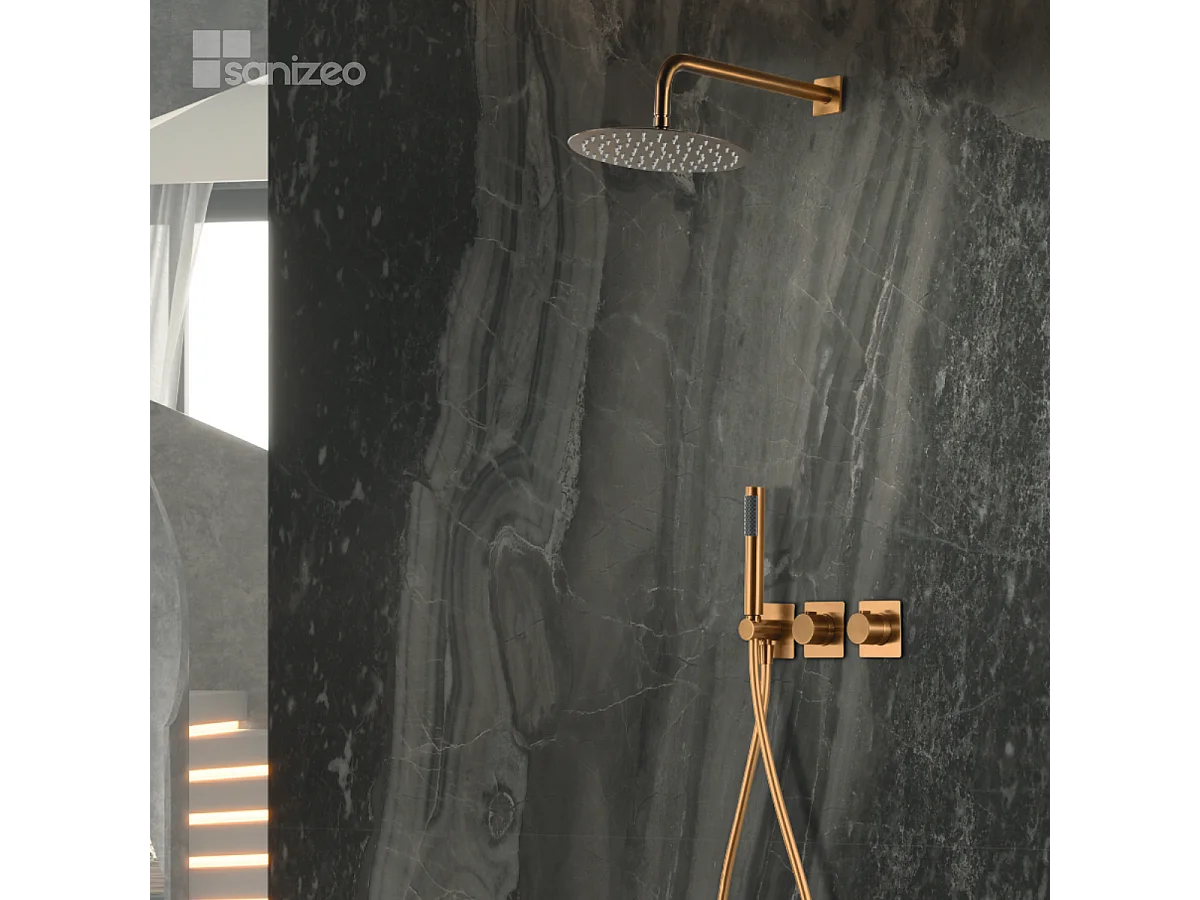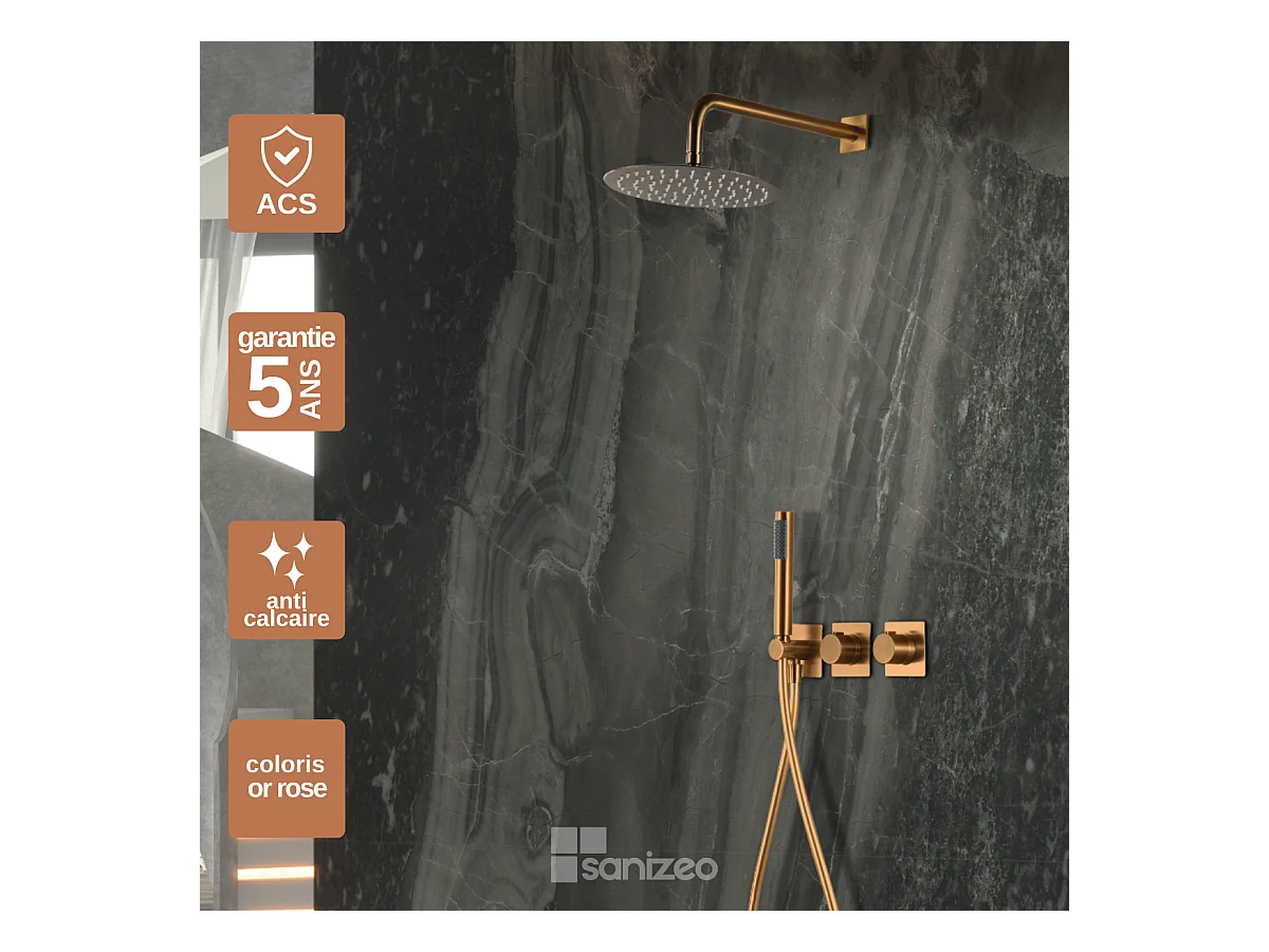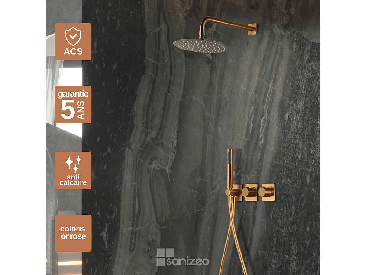 Colonne de Douche Encastrée avec Mitigeur Thermostatique or rose cuivré anti-calcaire - Design Moderne - TIBET IMEX