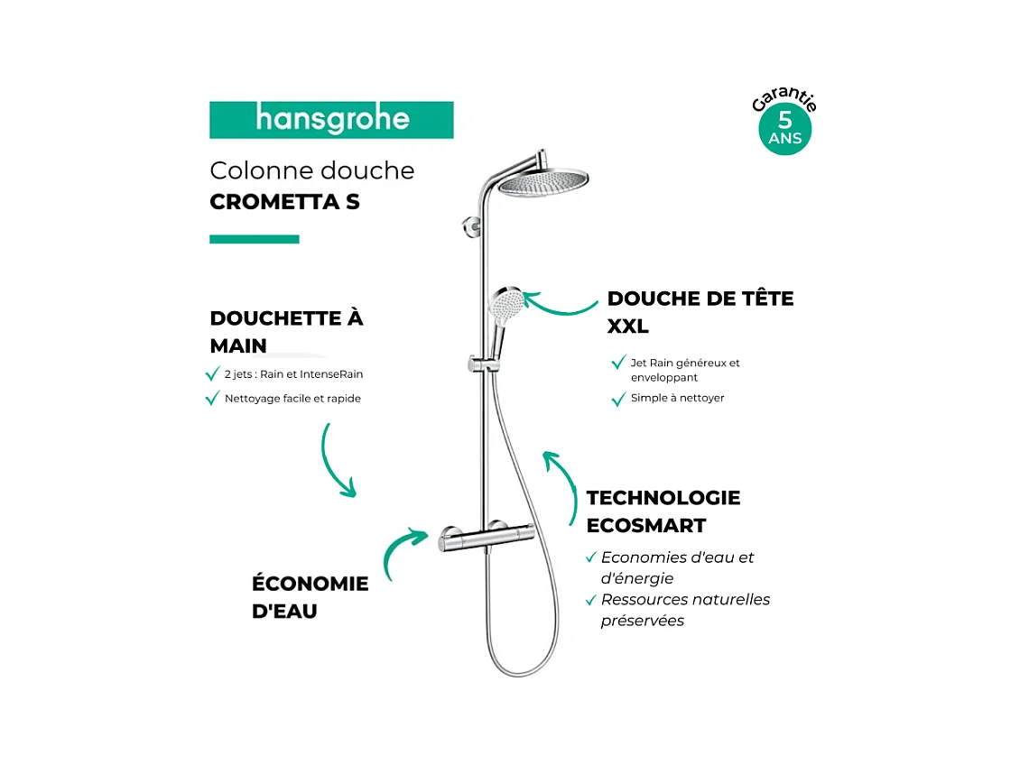 Colonne de douche HANSGROHE Crometta S 240 EcoSmart chromée + nettoyant Briochin