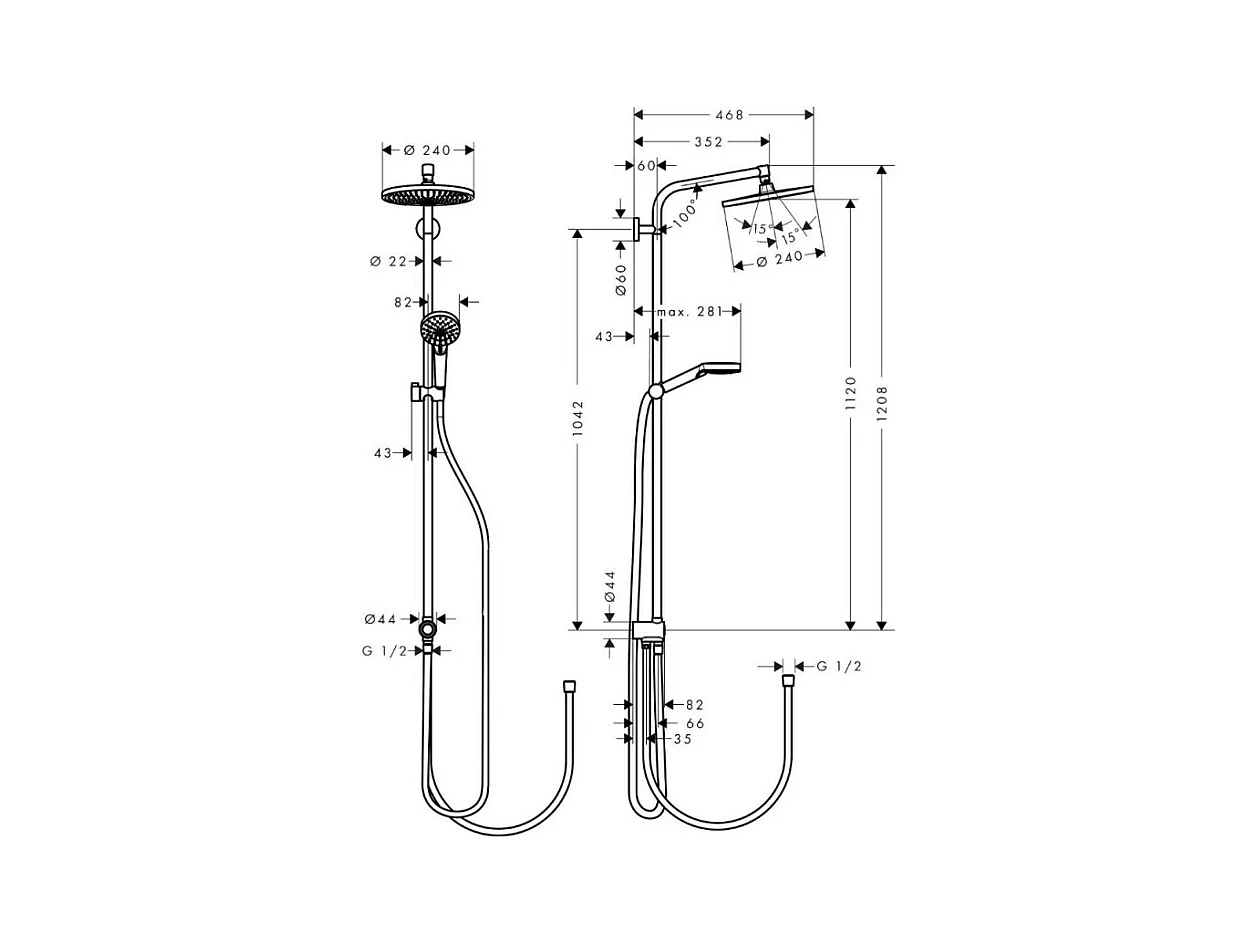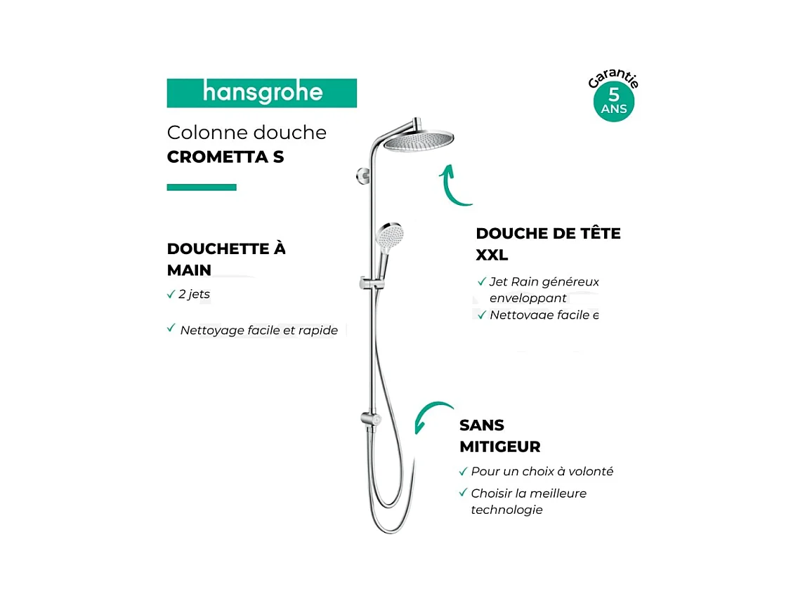 Colonne de douche ou bain douche sans mitigeur HANSGROHE Crometta S 240 chromé