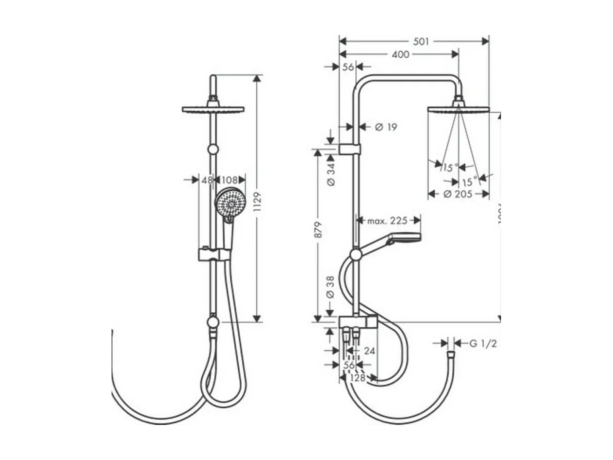Colonne de douche ou bain douche sans mitigeur HANSGROHE Vernis Blend 200 EcoSmart chromée + nettoyant Briochin