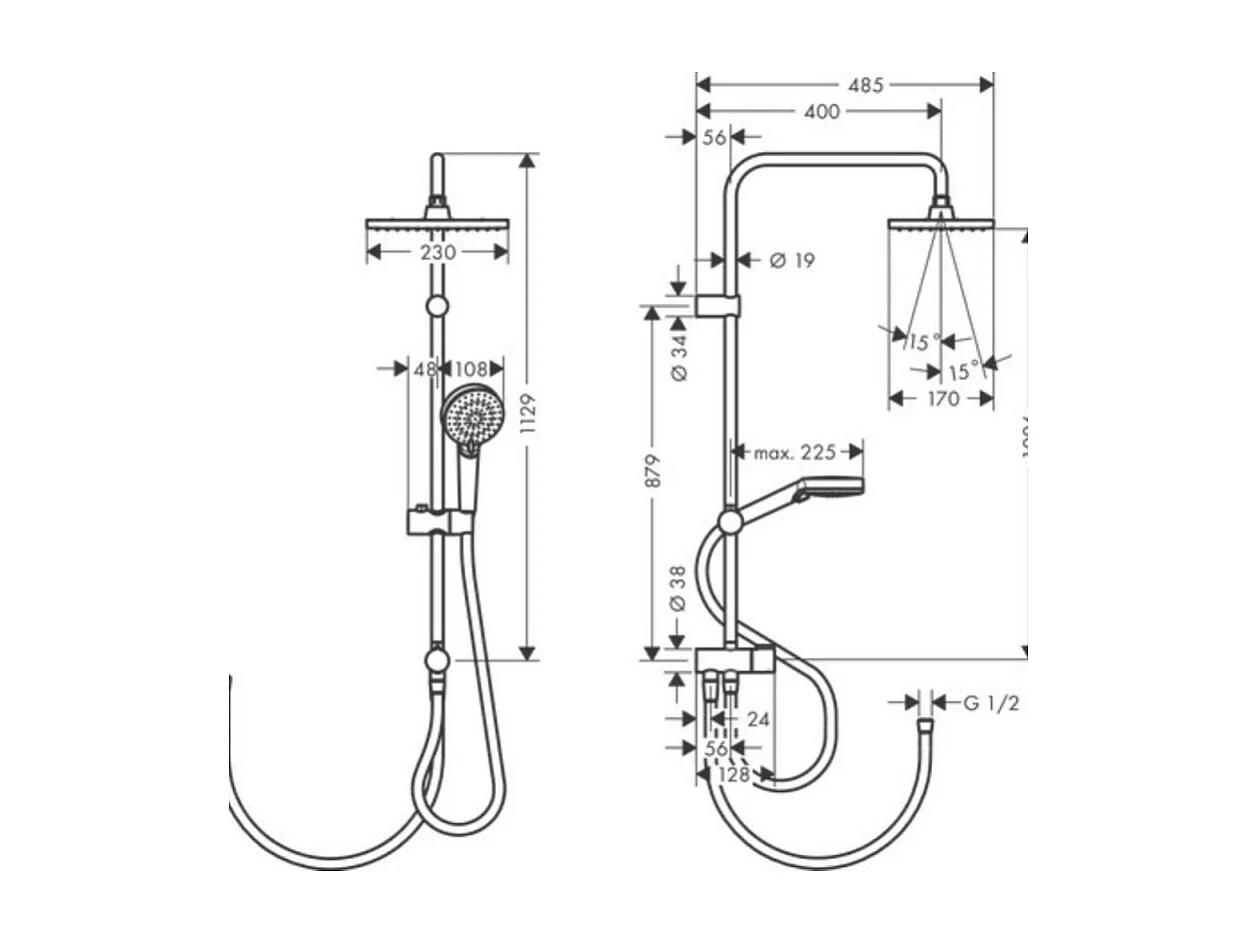 Colonne de douche ou bain douche sans mitigeur HANSGROHE Vernis Shape 230 chromé