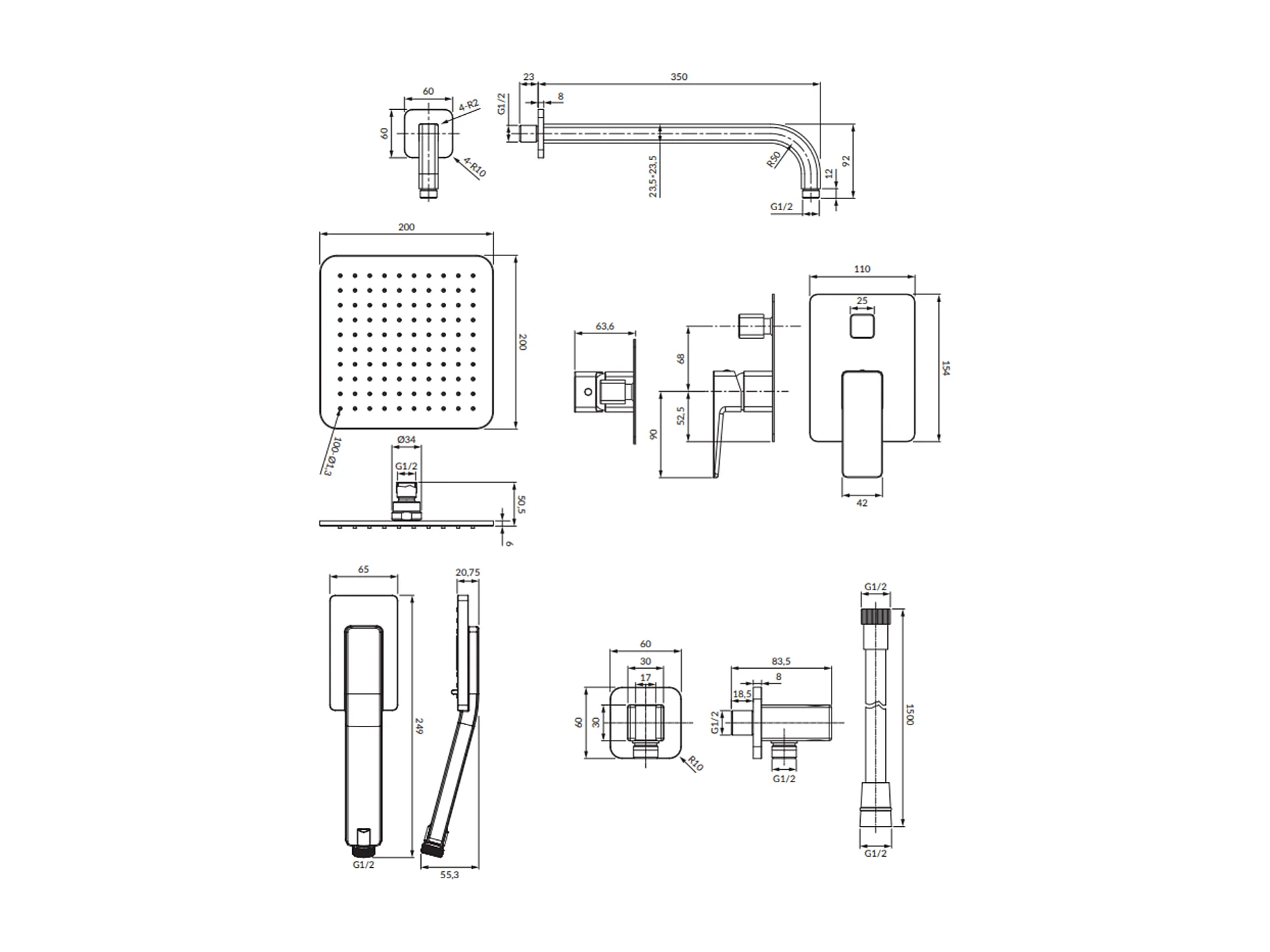 Colonne de douche PARMA encastrable graphite