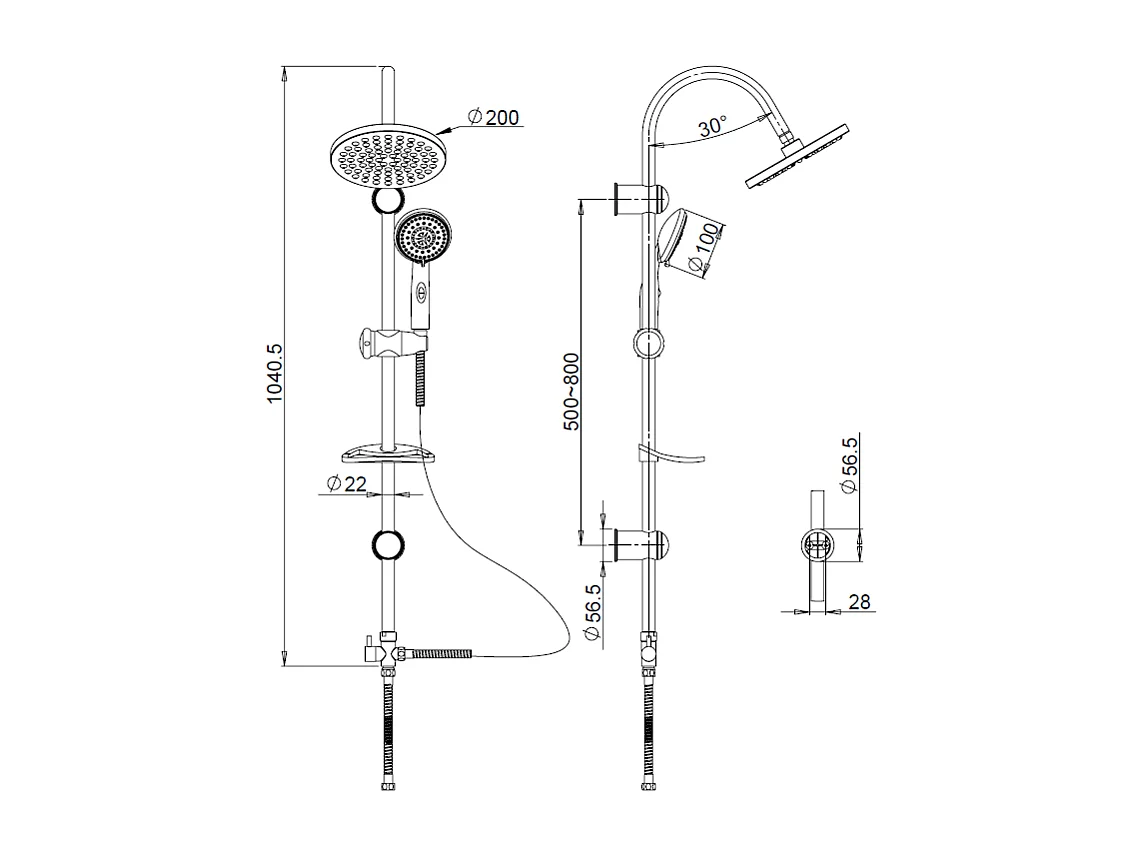 Colonne De Douche Avec Pommeau Rond Fixe, Douchette Et Porte-Savon