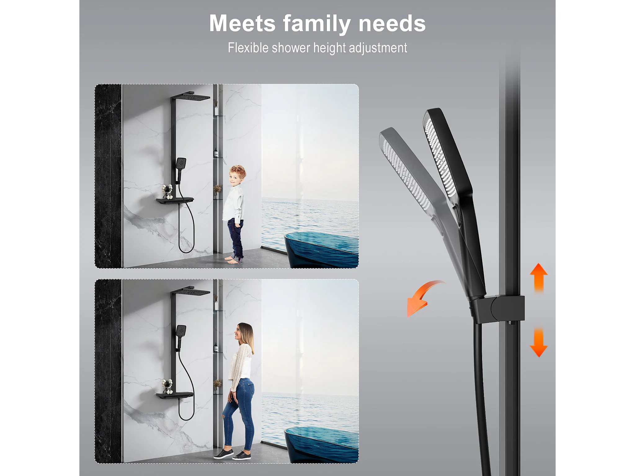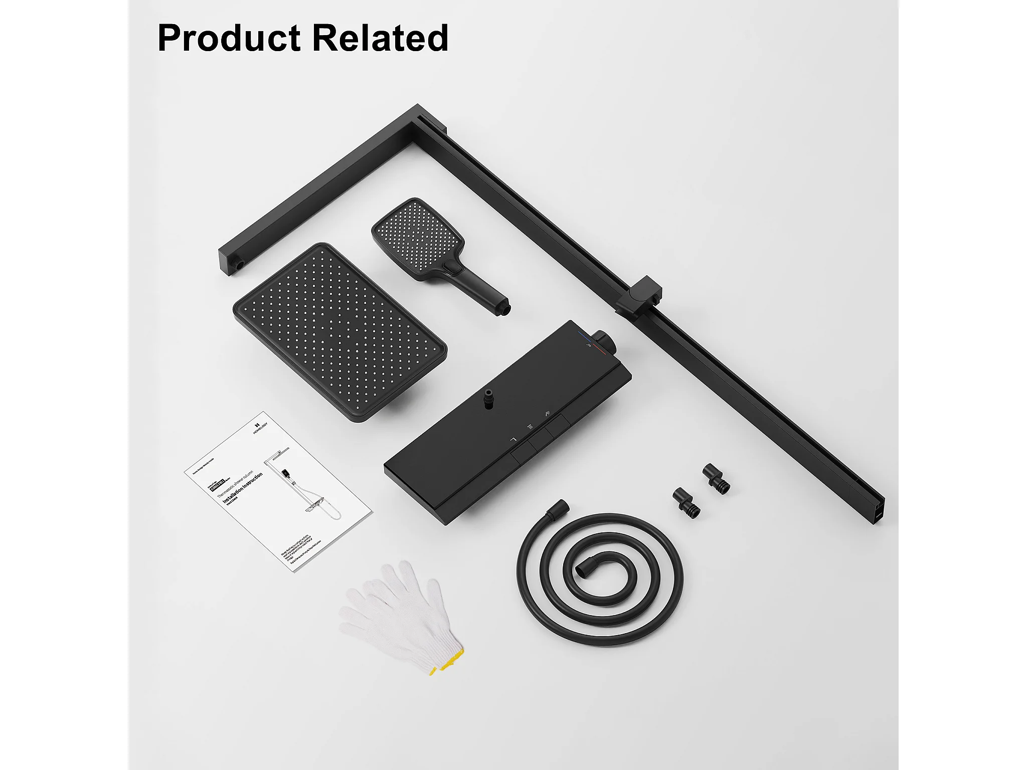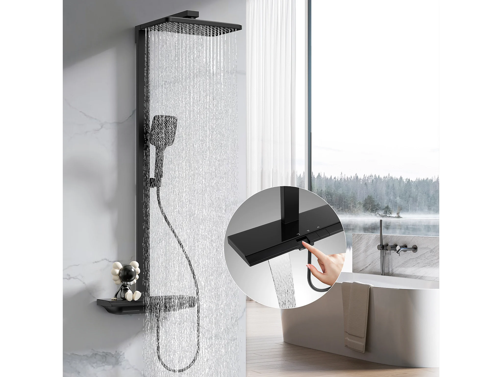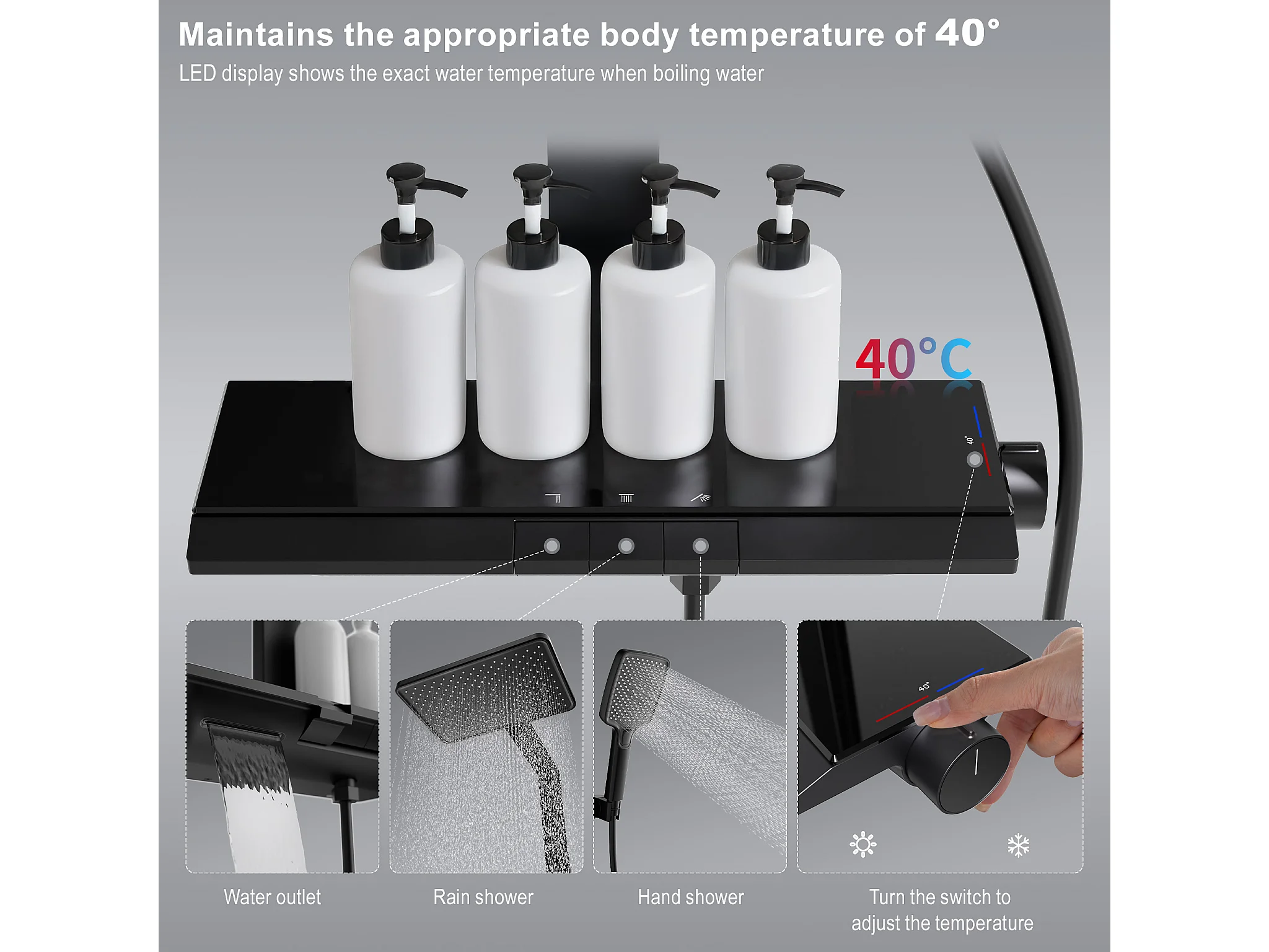 Colonne de Douche Thermostatique 40℃ avec plaque thermostatique de 40 cm Ensemble de Douche en Laiton douchette à main avec 4 intensités de jet