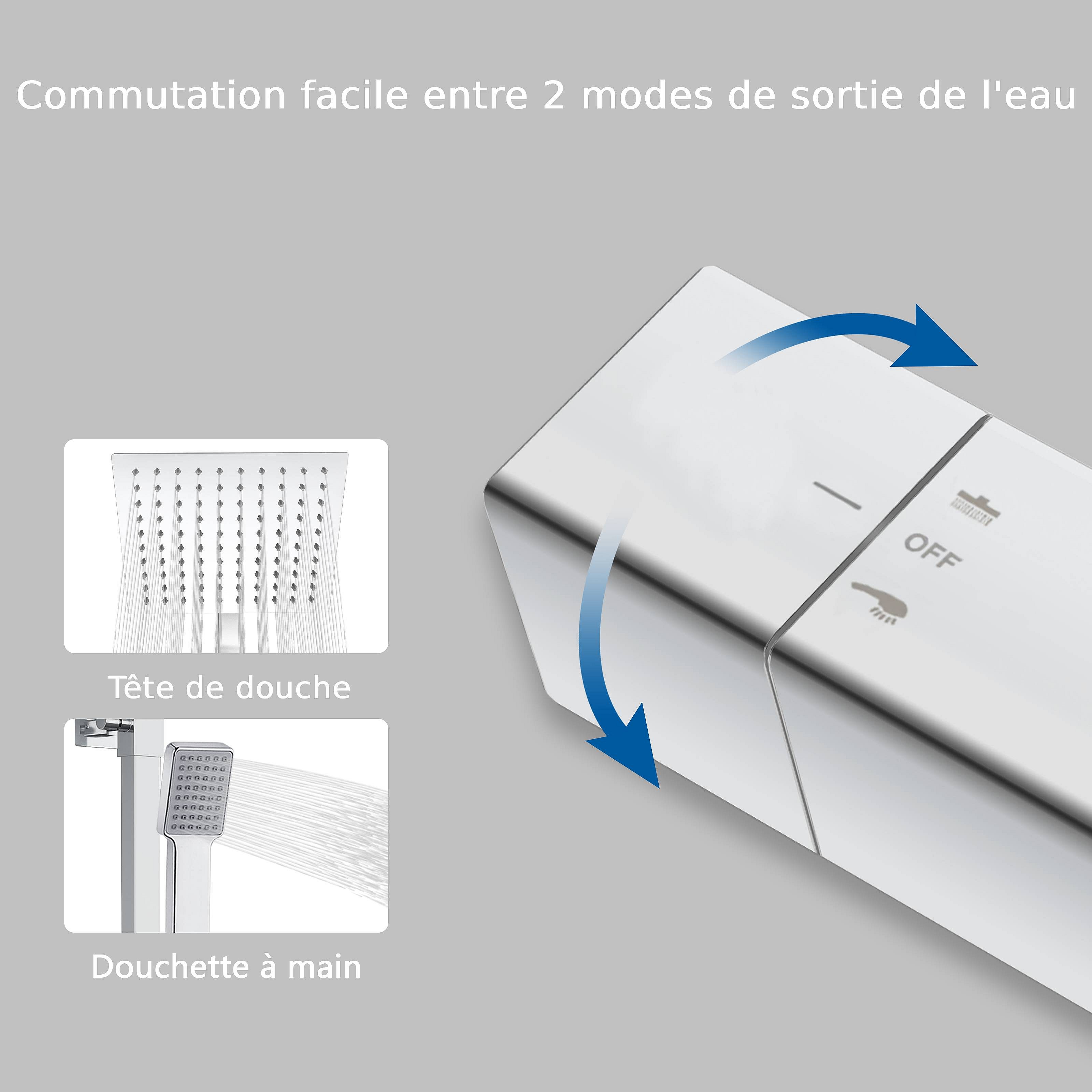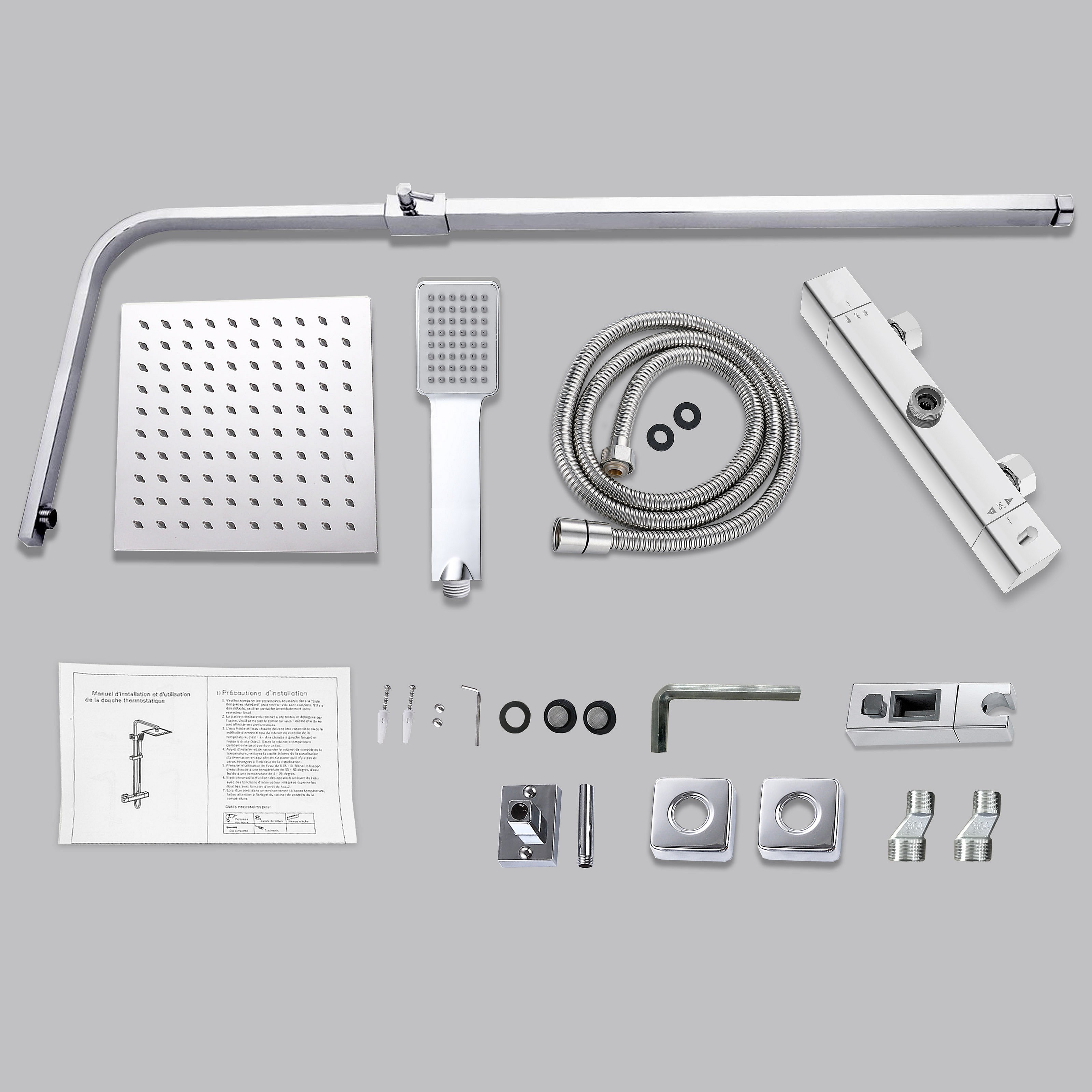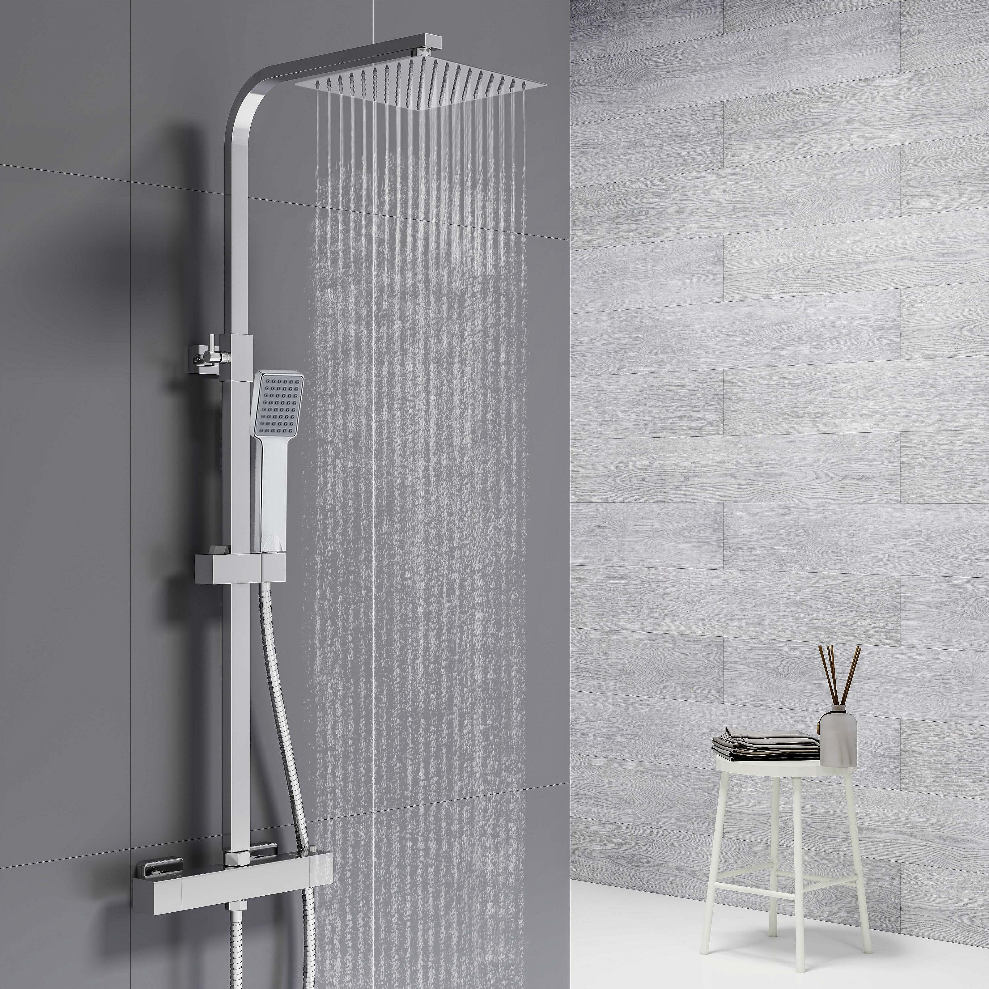 Colonne de douche thermostatique AICA- Ensemble de douche carrée en acier inoxydable- Système douche réglable en hauteur- Chromé