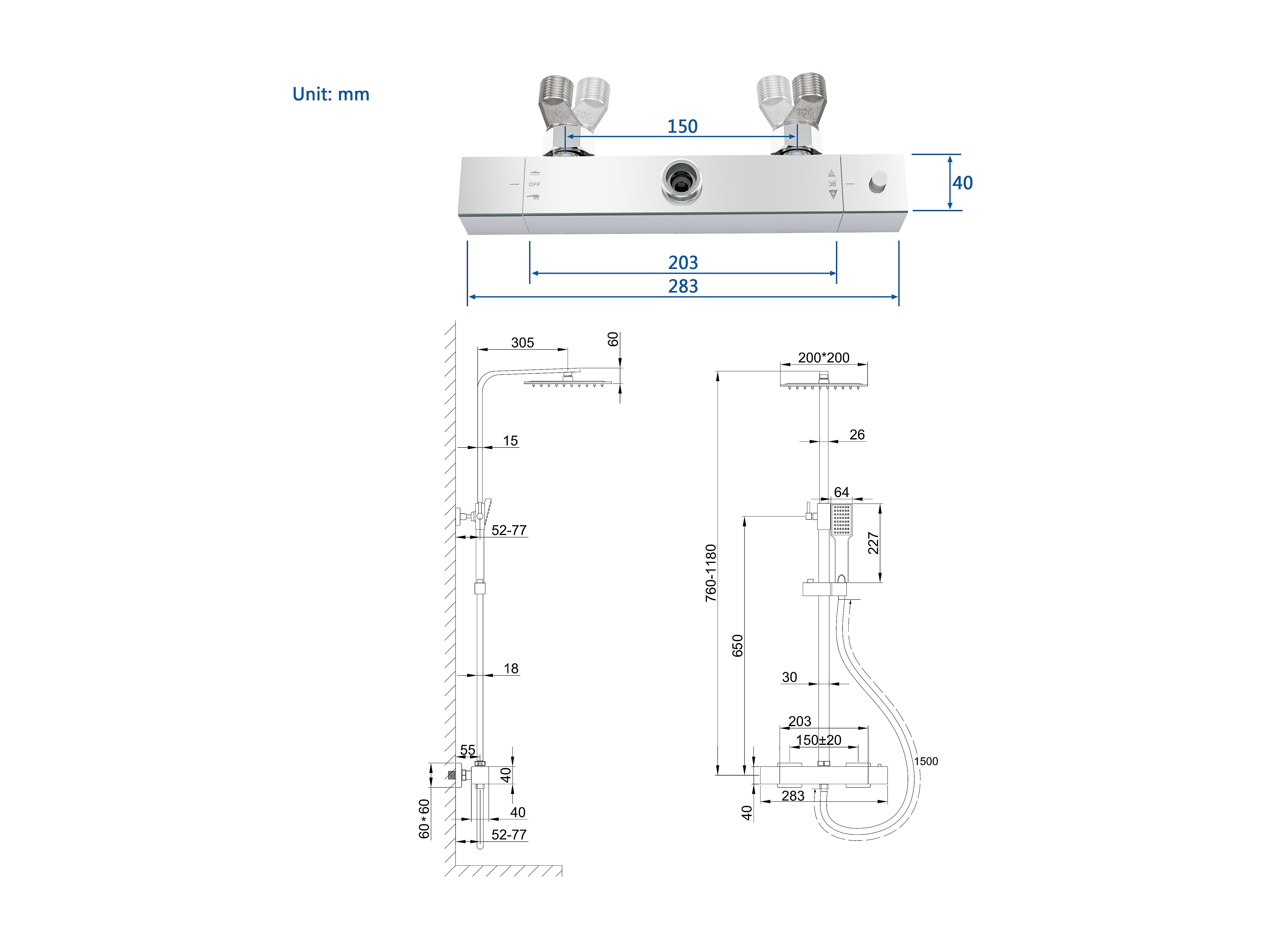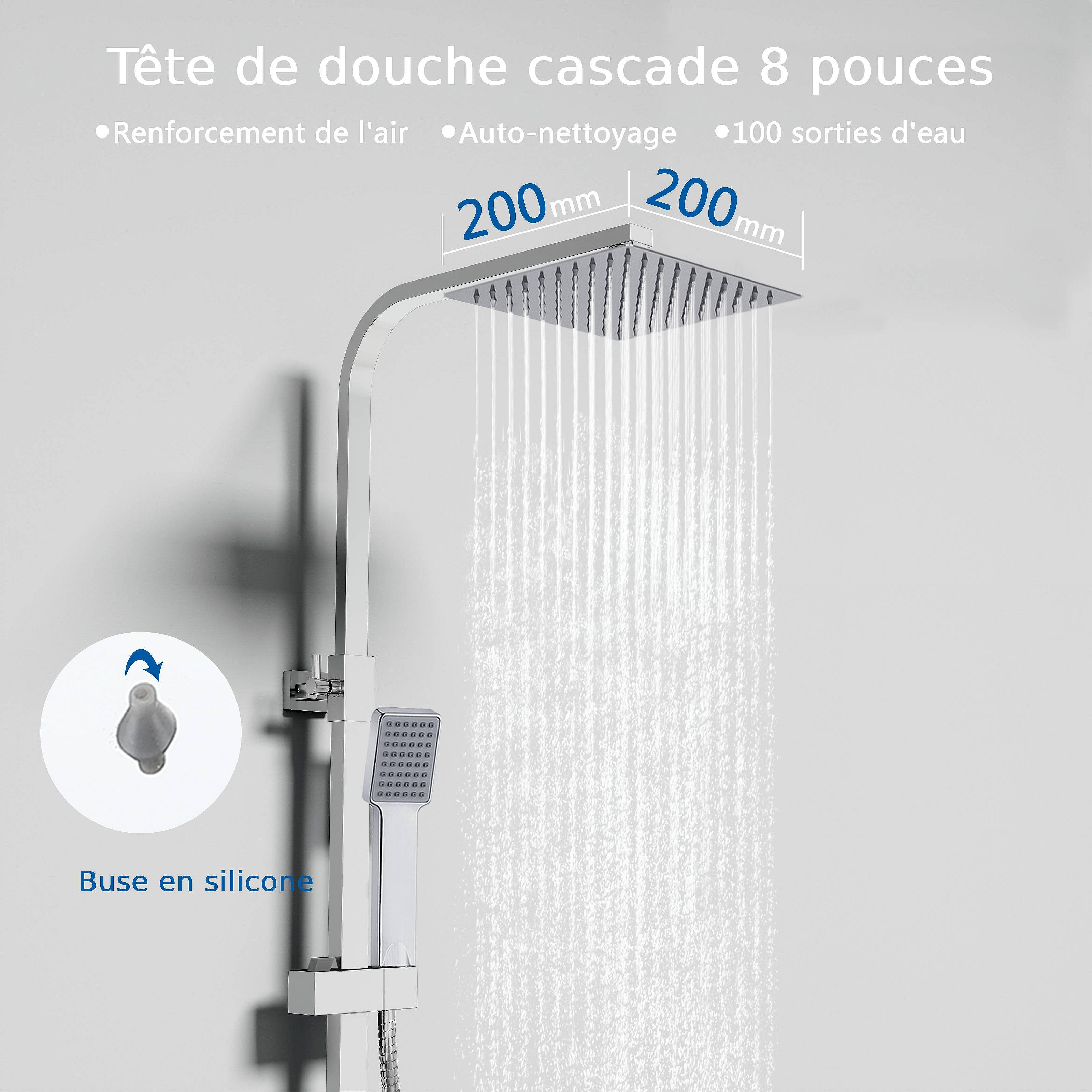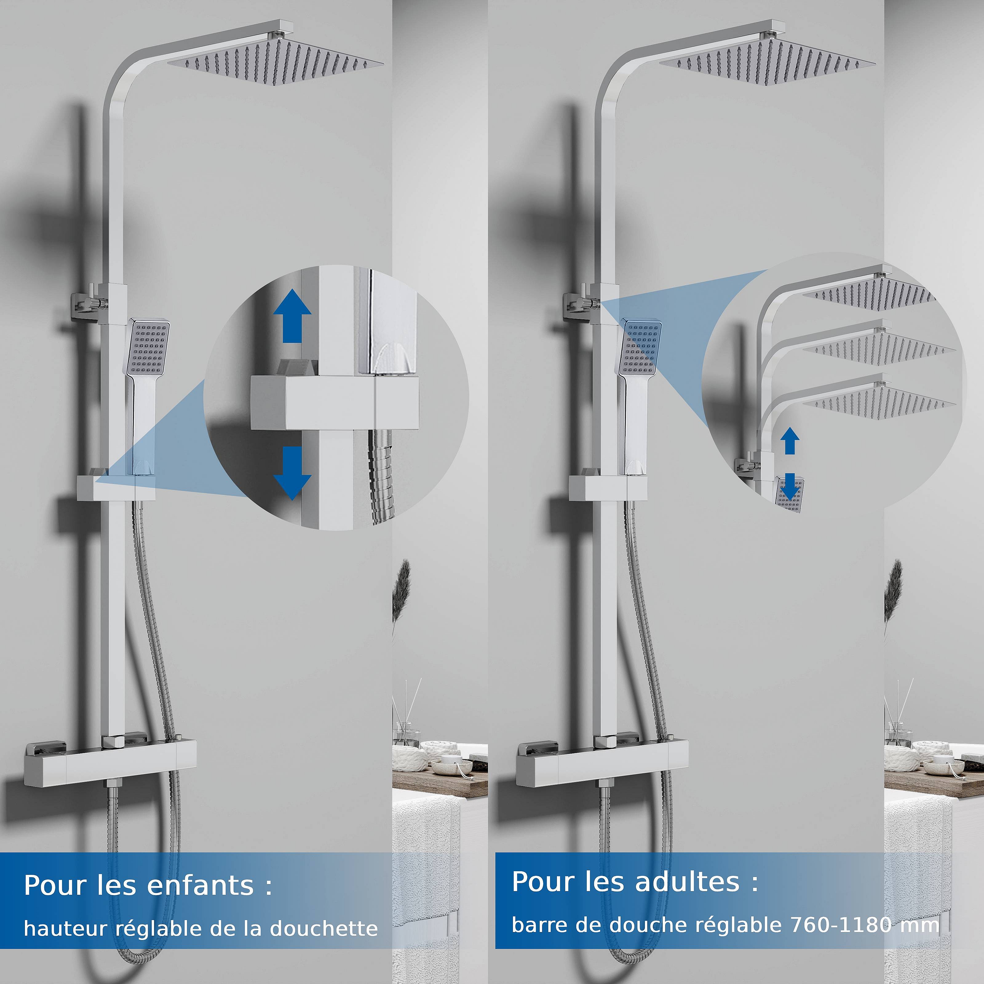 Colonne de douche thermostatique AICA- Ensemble de douche carrée en acier inoxydable- Système douche réglable en hauteur- Chromé