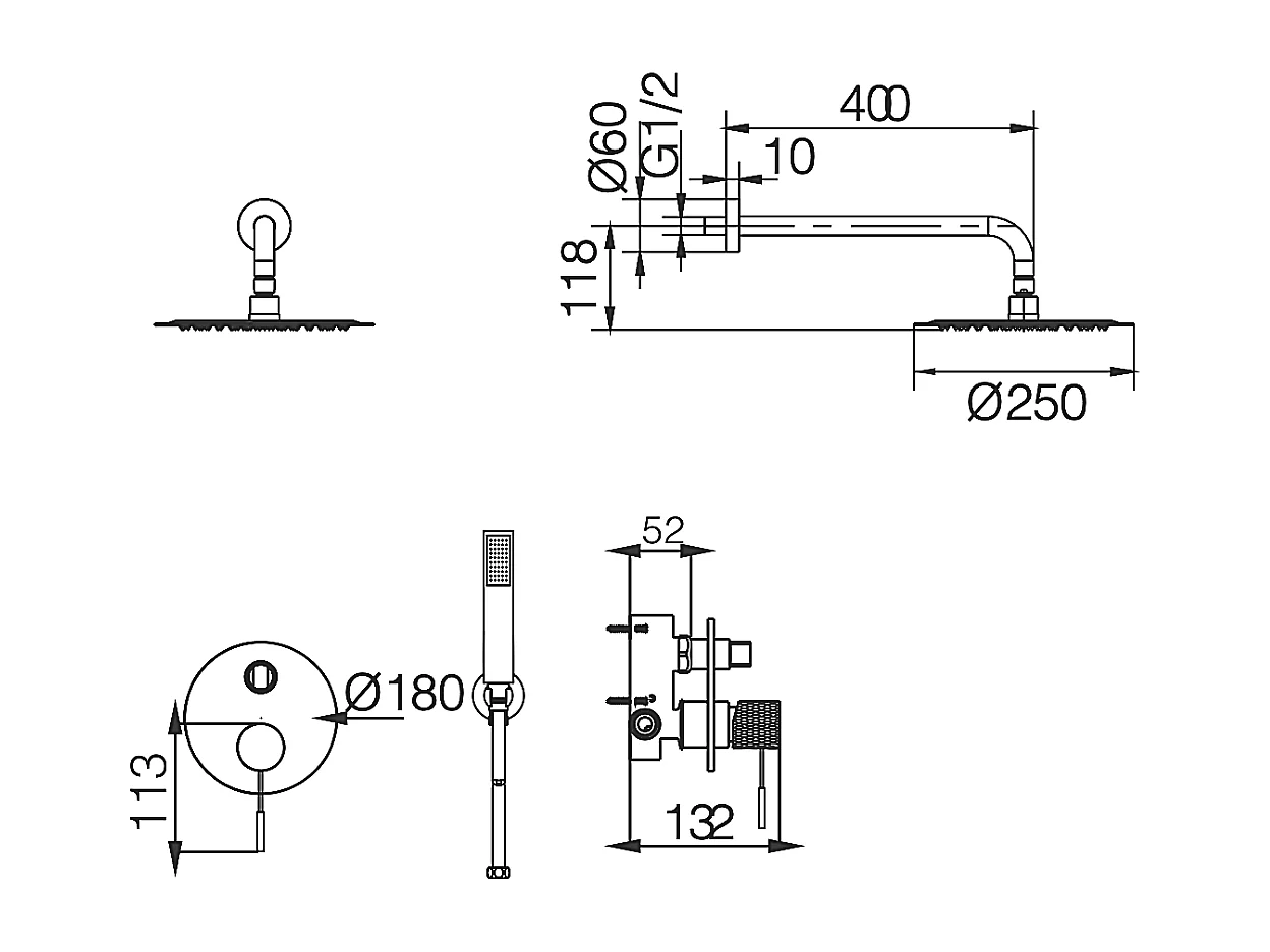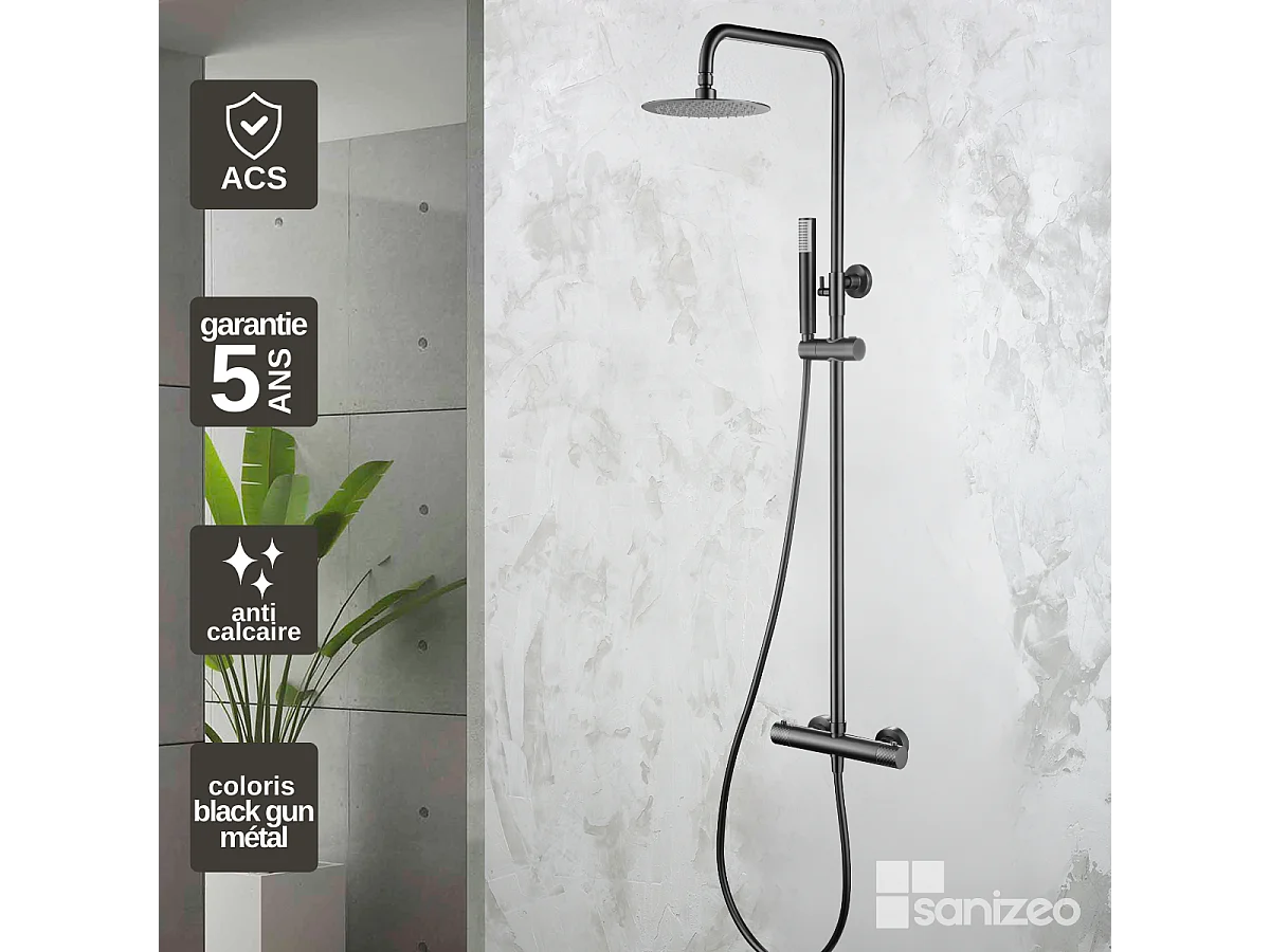Colonne de Douche avec Mitigeur Thermostatique noir métal anti-calcaire - Design Moderne - GENOVA IMEX