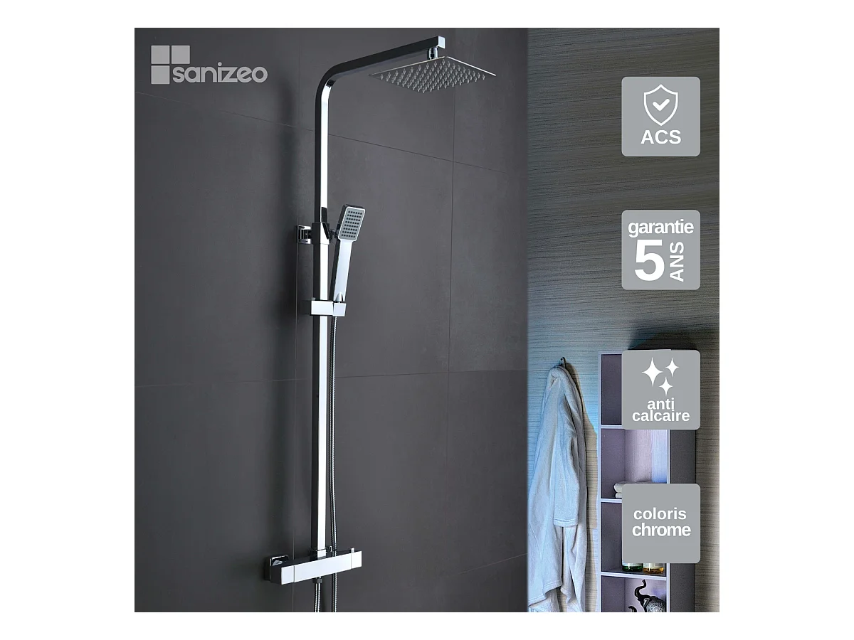 Colonne de Douche avec Mitigeur Thermostatique chromé anti-calcaire - Design Moderne - VIGO IMEX