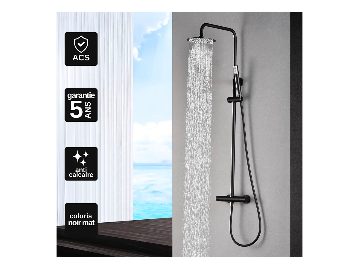 Colonne de Douche Thermostatique Anti-Calcaire Noir Mat IMEX MONZA BTM039/NG