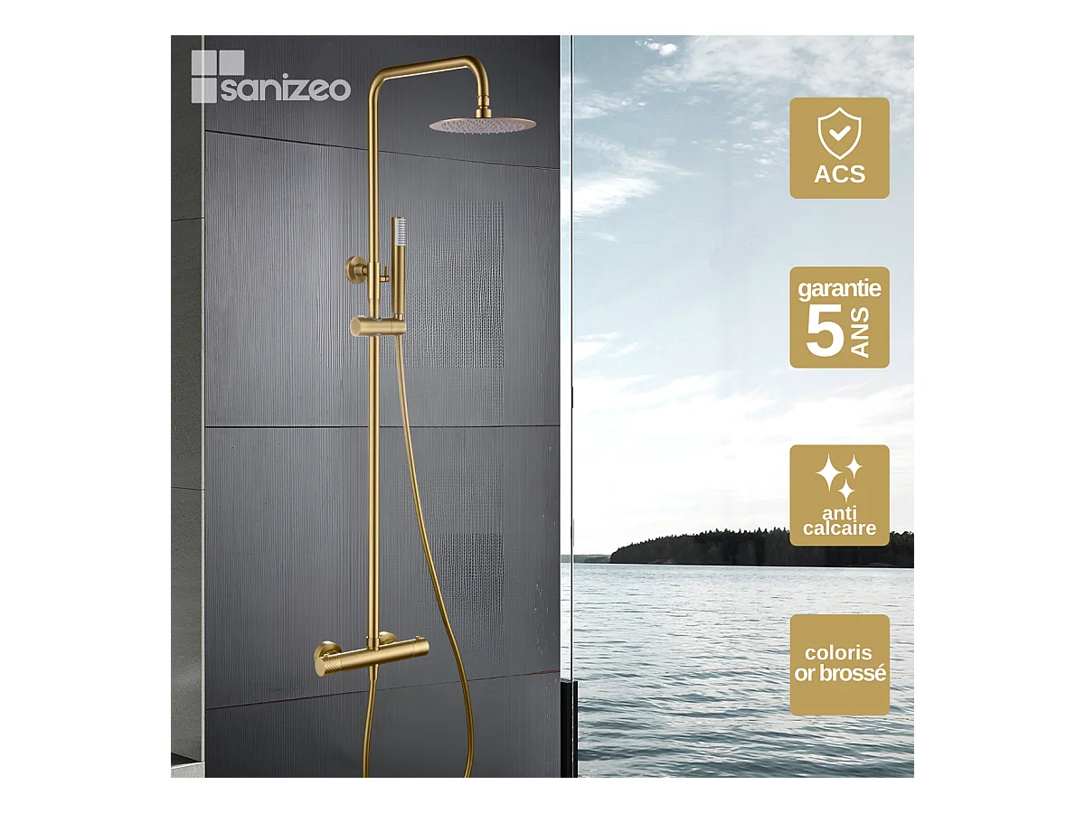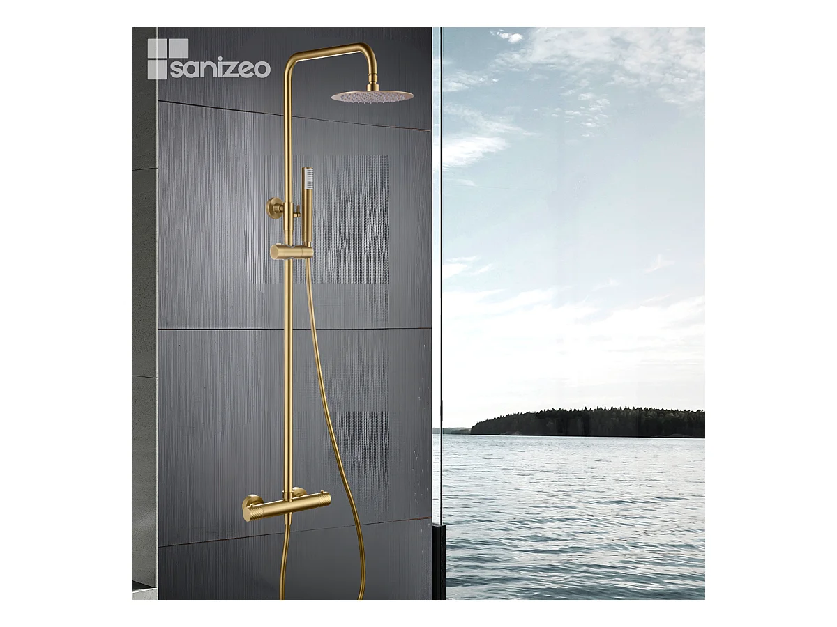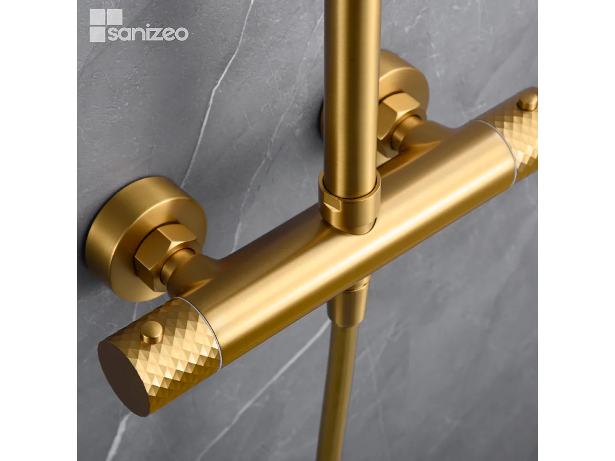 Colonne de Douche avec Mitigeur Thermostatique or brossé anti-calcaire - Design Moderne - GENOVA IMEX