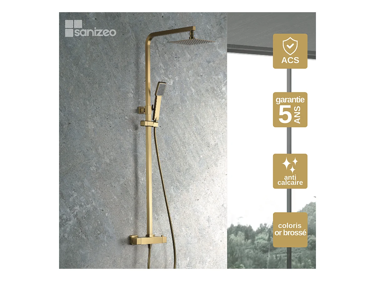 Colonne de Douche avec Mitigeur Thermostatique or brossé anti-calcaire - Design Moderne - VIGO IMEX