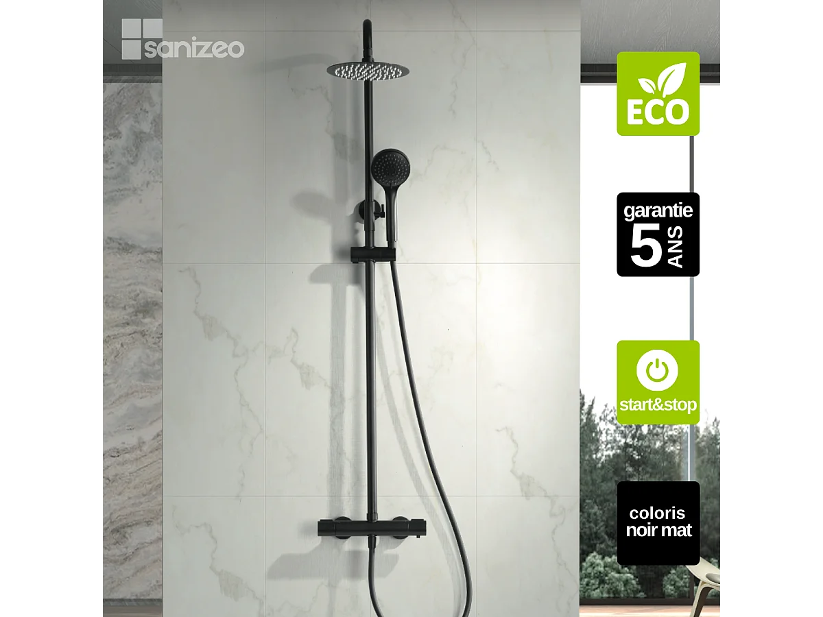 Colonne de Douche avec Mitigeur Thermostatique noir mat anti-calcaire - Design Moderne - ECOKENT IMEX