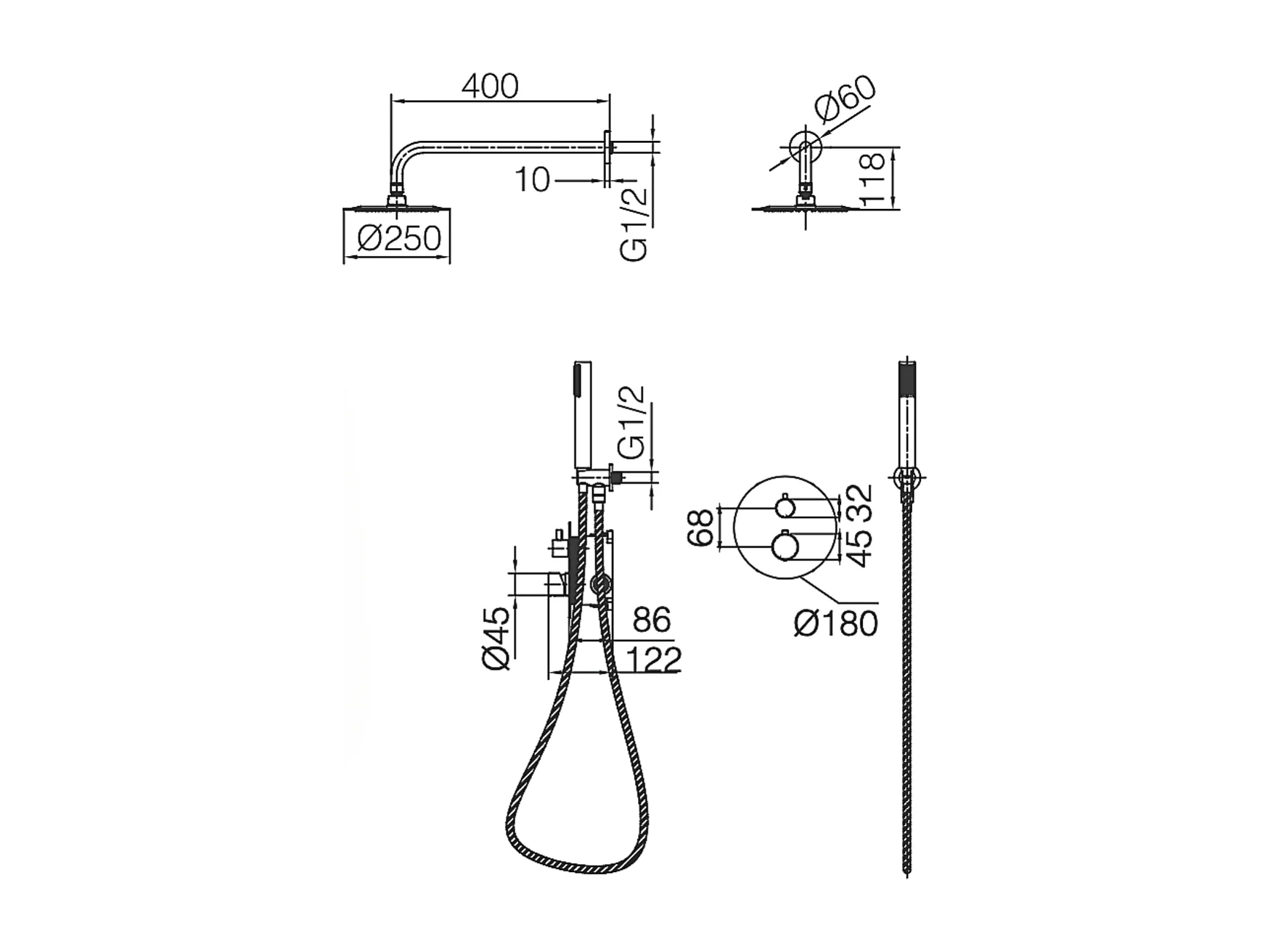 Colonne de Douche Encastrée avec Mitigeur Thermostatique noir mat anti-calcaire - Design Moderne - GENOVA IMEX