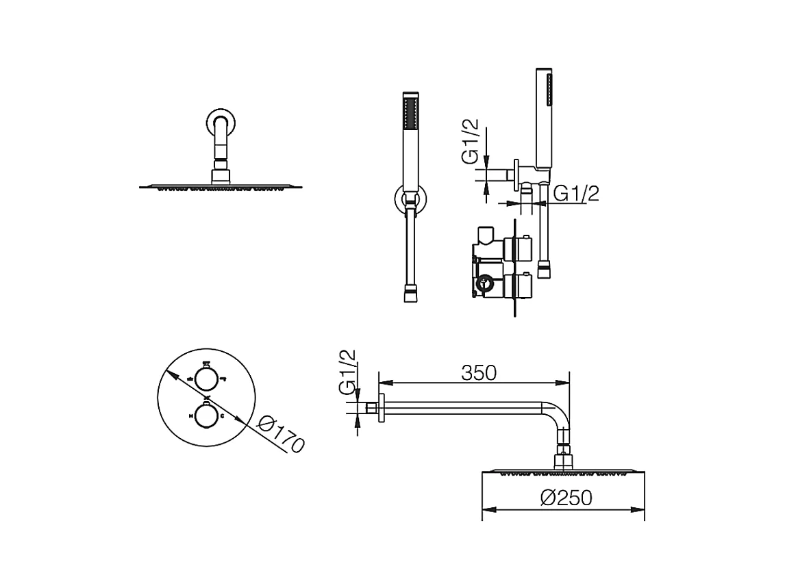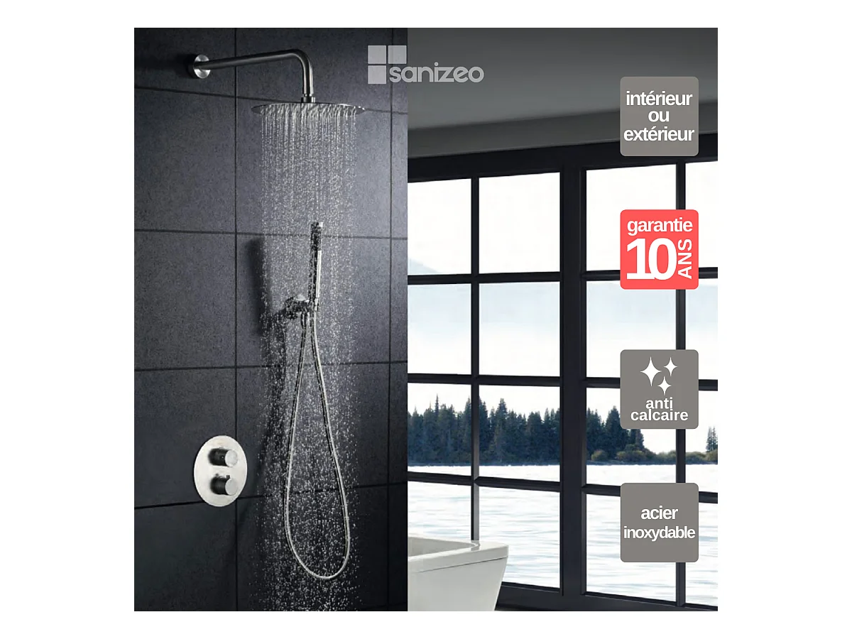 Colonne de Douche Encastrée avec Mitigeur Thermostatique acier inoxydable anti-calcaire - Design Moderne - MOSCU IMEX