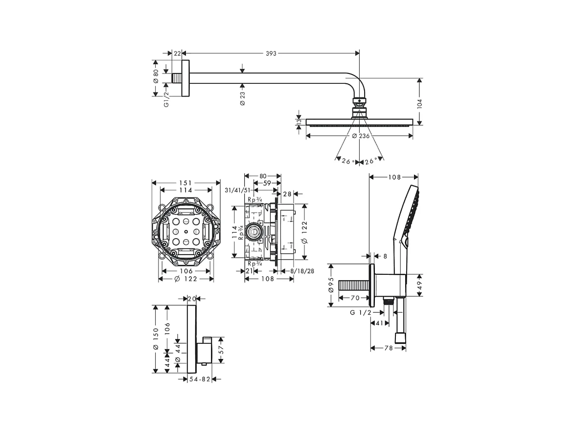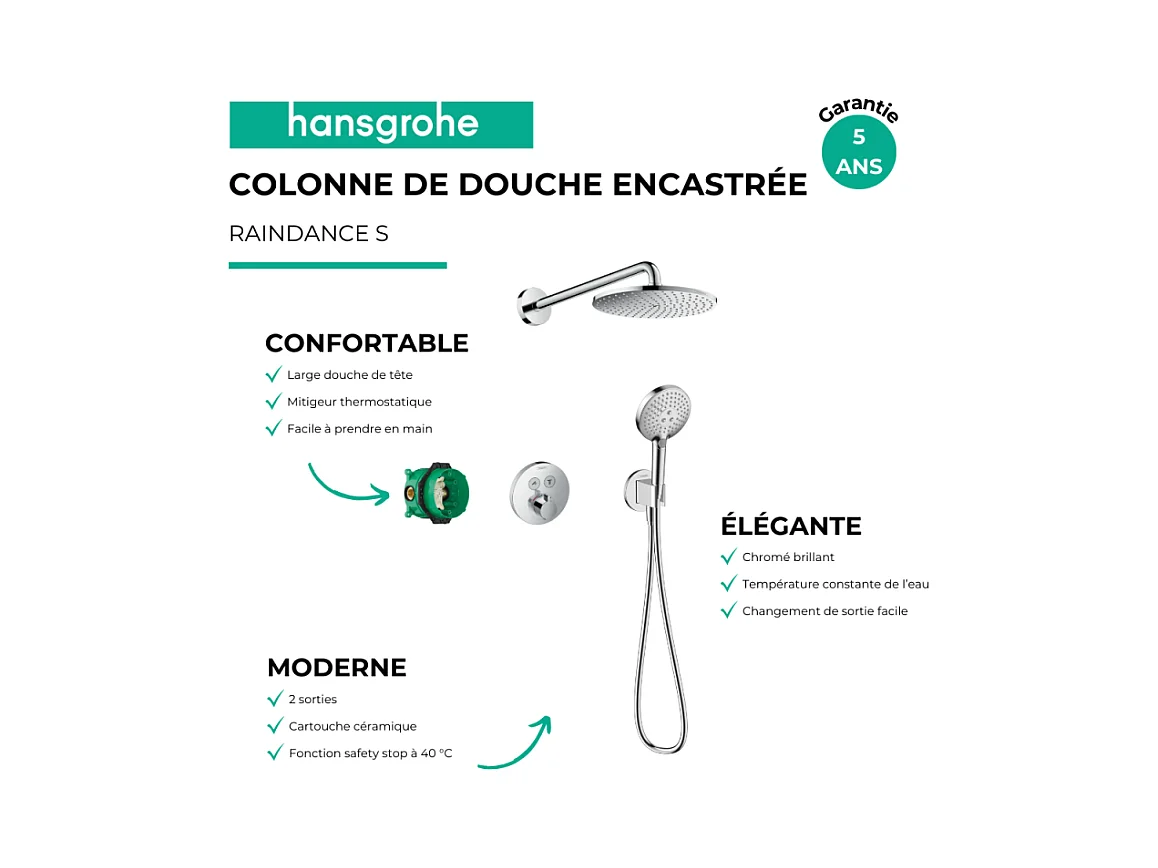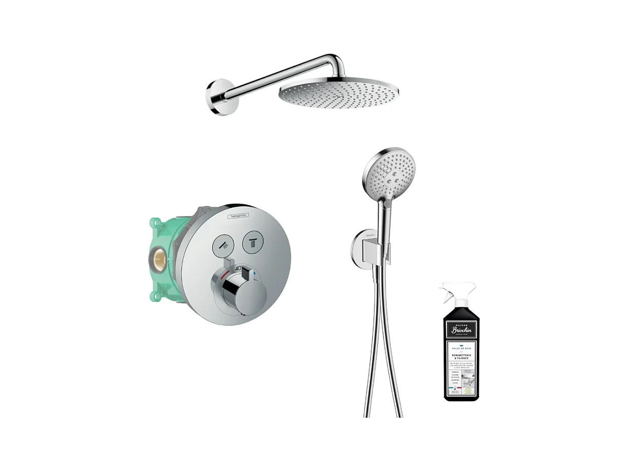 Colonne de douche thermostatique encastrée HANSGROHE ShowerSelect S chromé + nettoyant Briochin