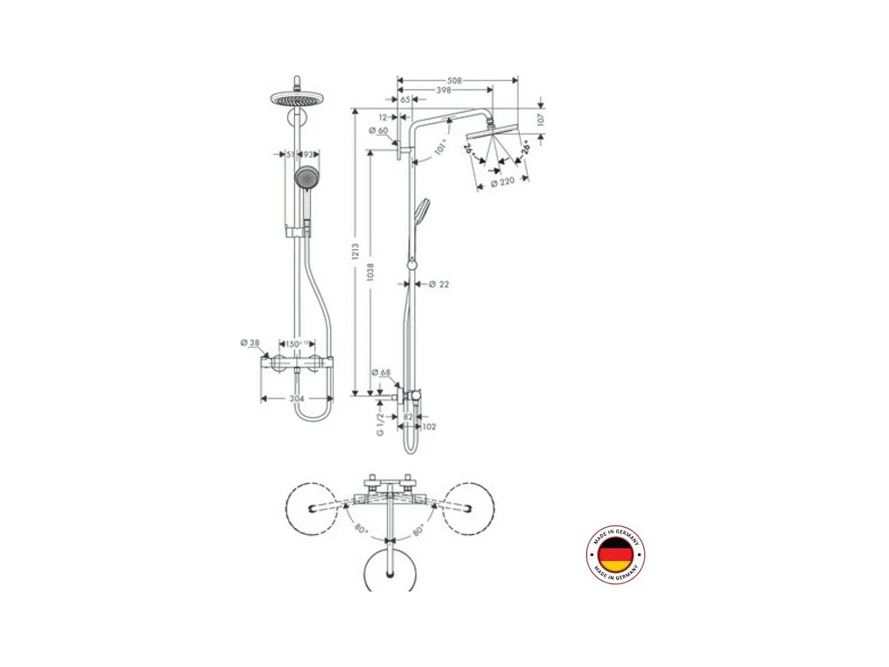 Colonne de douche thermostatique HANSGROHE Croma 220 EcoSmart chromé