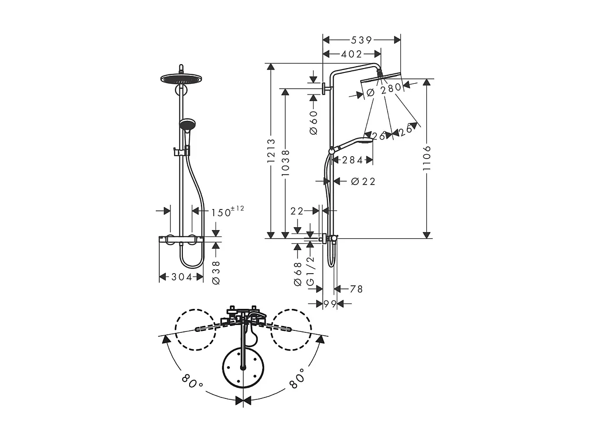 Colonne de douche thermostatique HANSGROHE Croma Select S 280 aspect doré poli