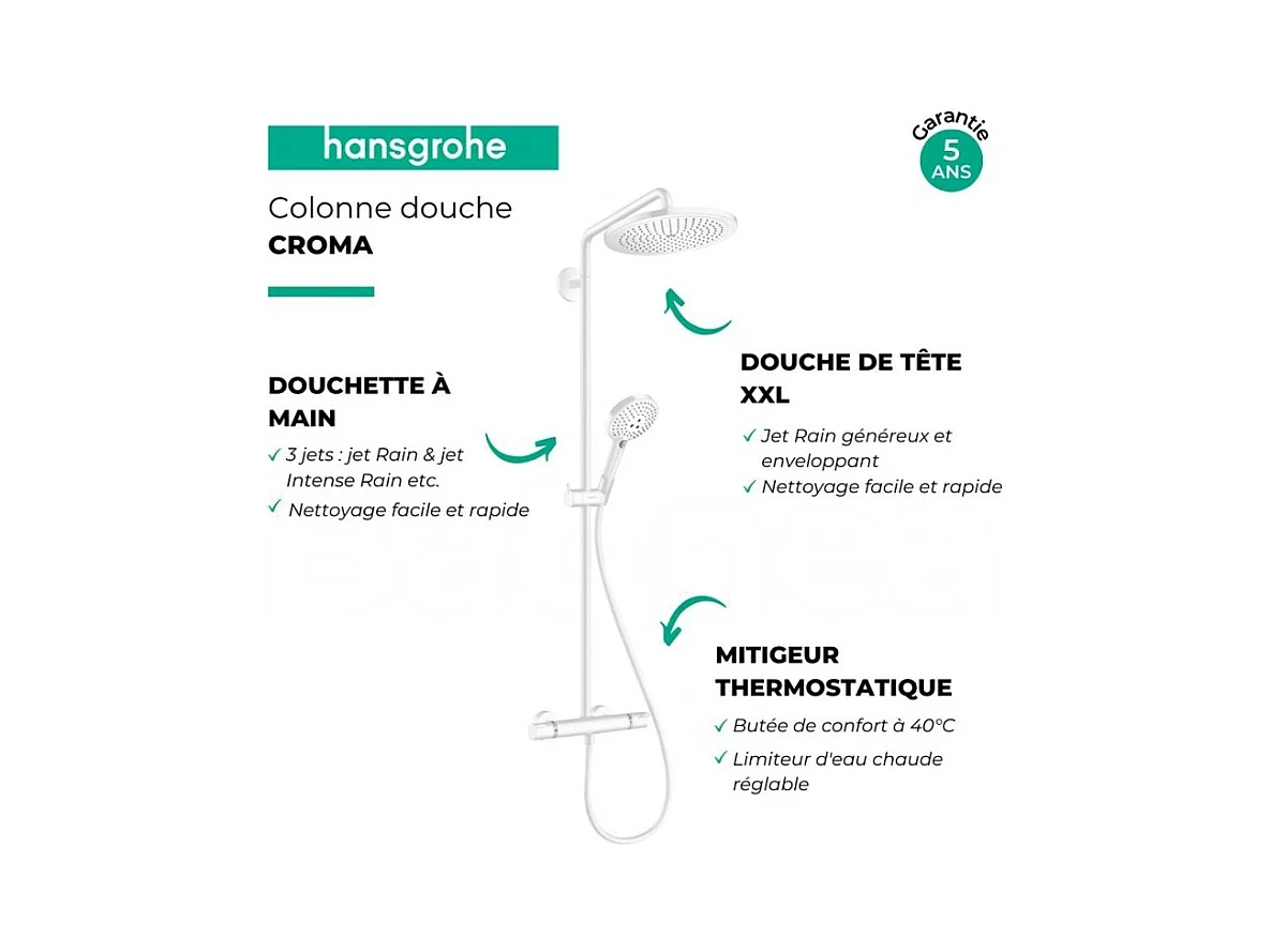 Colonne de douche thermostatique HANSGROHE Croma Select S 280 blanc mat