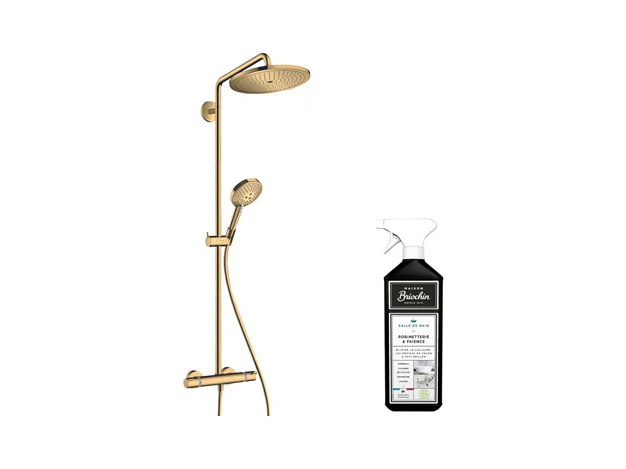 Colonne de douche thermostatique HANSGROHE Croma Select S 280 EcoSmart aspect dorée poli + nettoyant Briochin