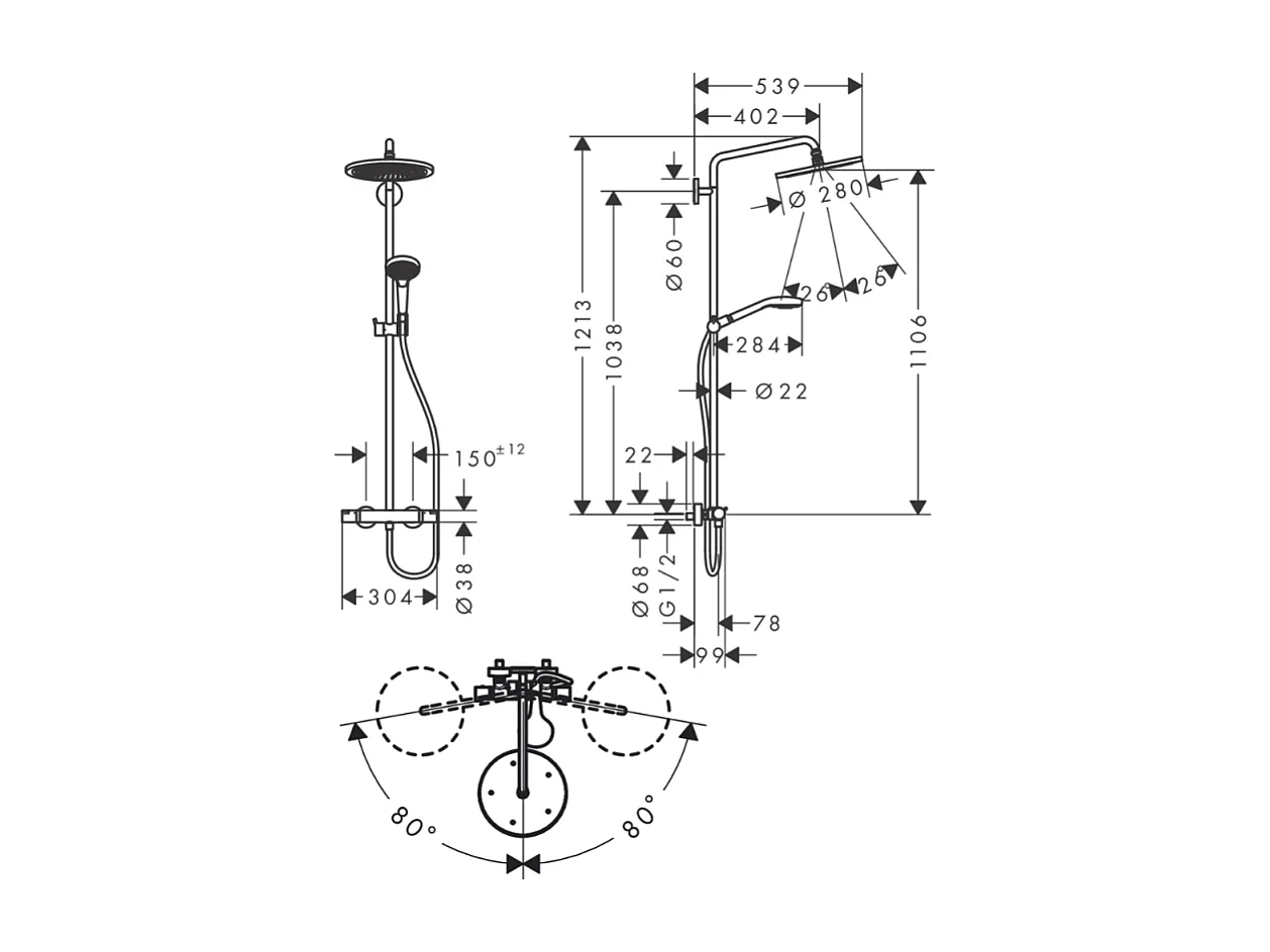 Colonne de douche thermostatique HANSGROHE Croma Select S 280 EcoSmart blanc mat