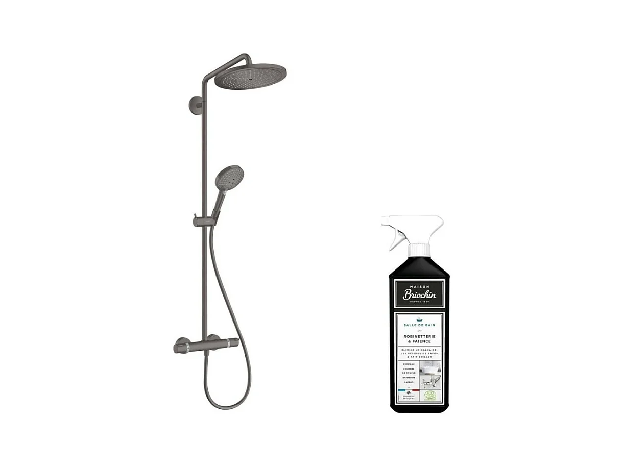 Colonne de douche thermostatique HANSGROHE Croma Select S 280 Noir chromée brossée + nettoyant Briochin