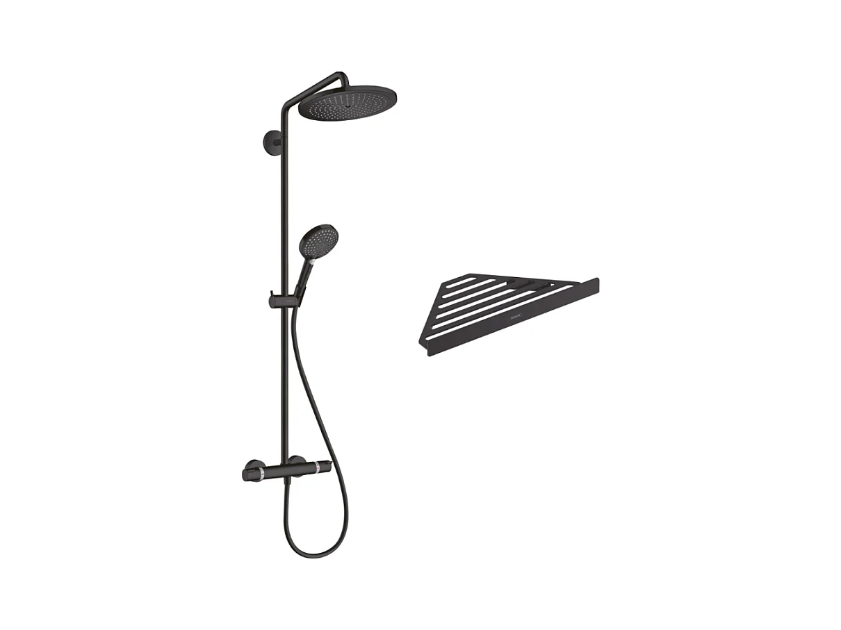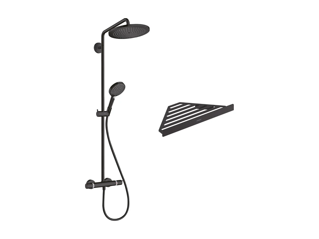 Colonne de douche thermostatique HANSGROHE Croma Select S 280 noir mat + tablette AddStoris