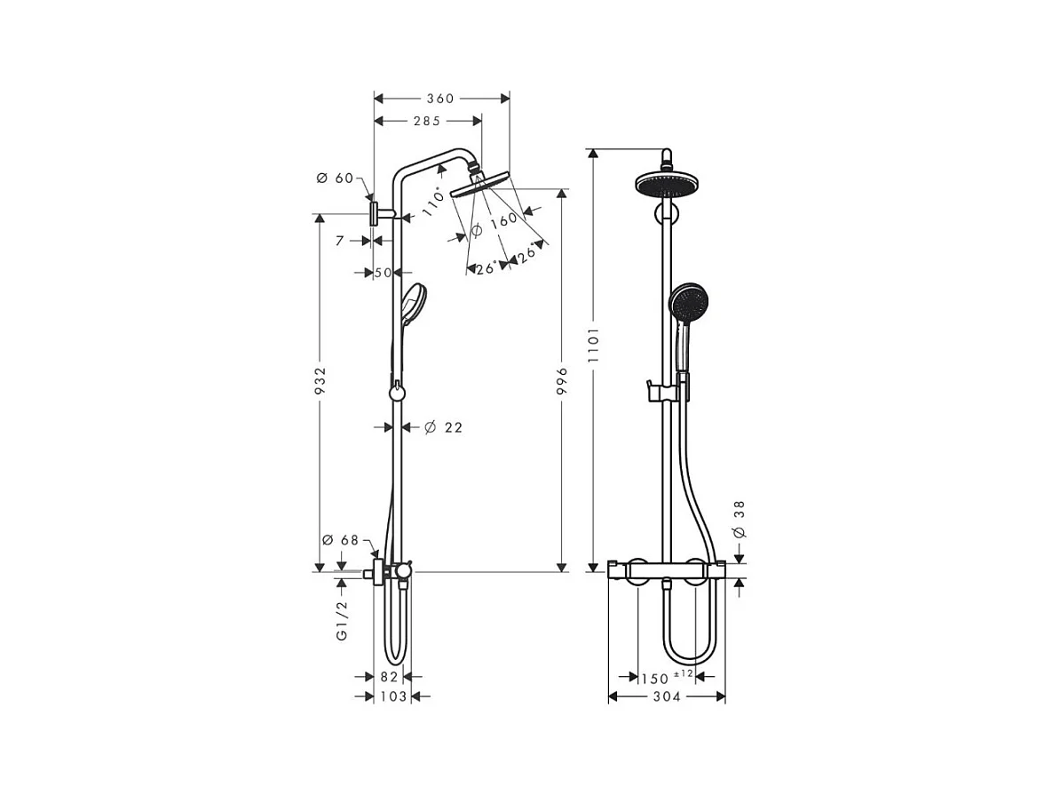 Colonne de douche thermostatique HANSGROHE Crometta 4 jets Chrome + nettoyant Briochin