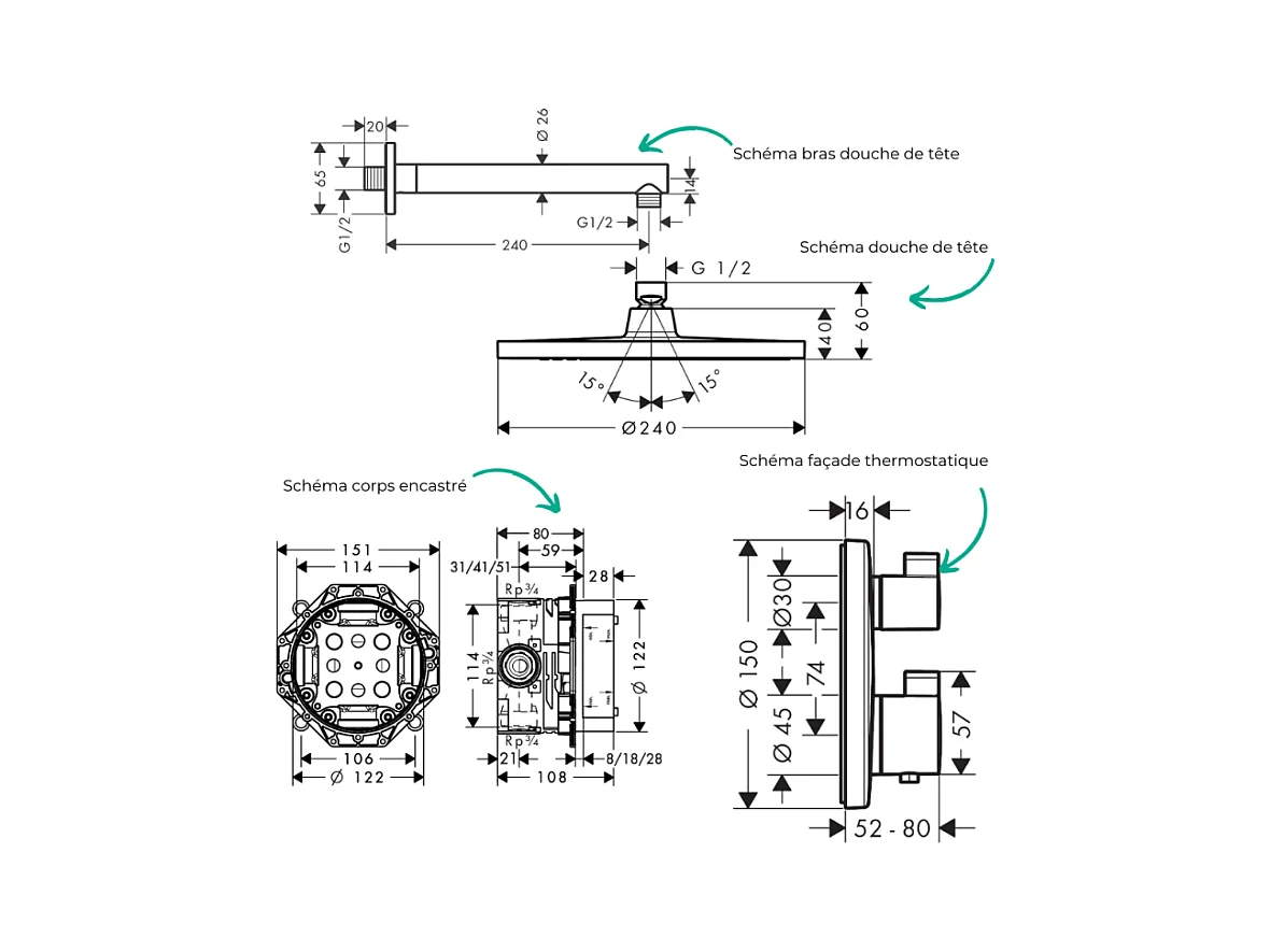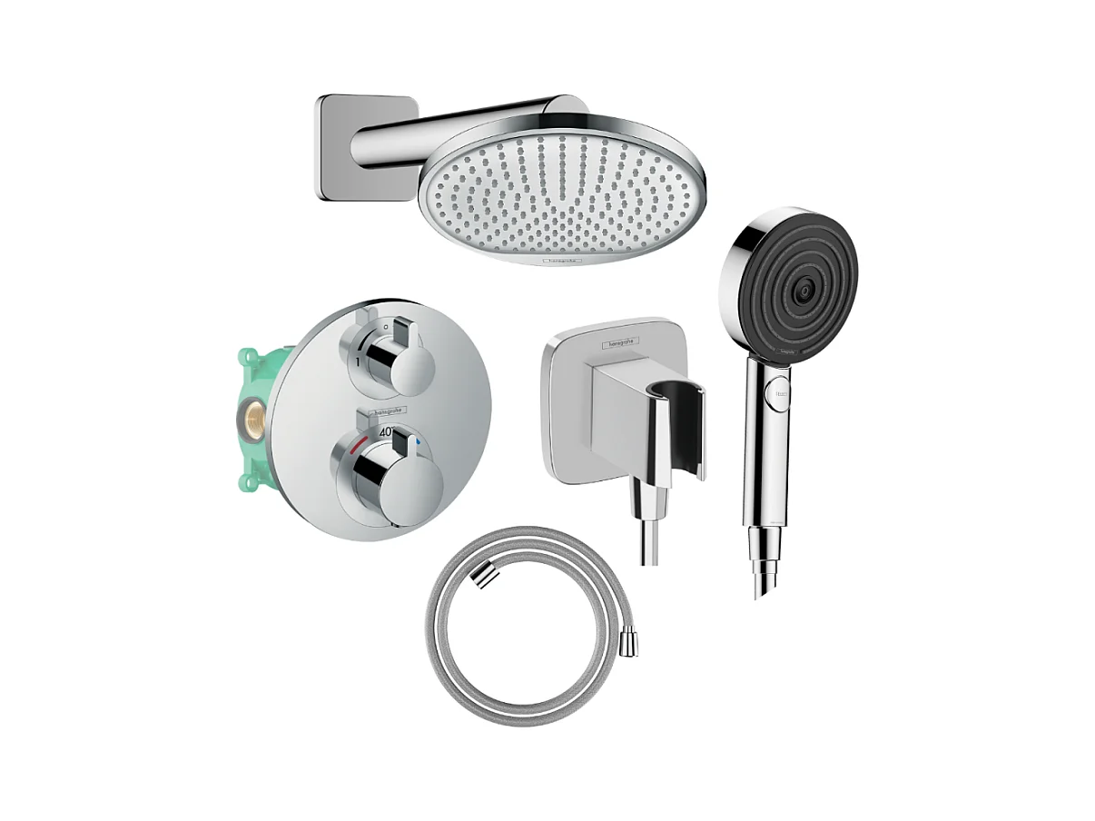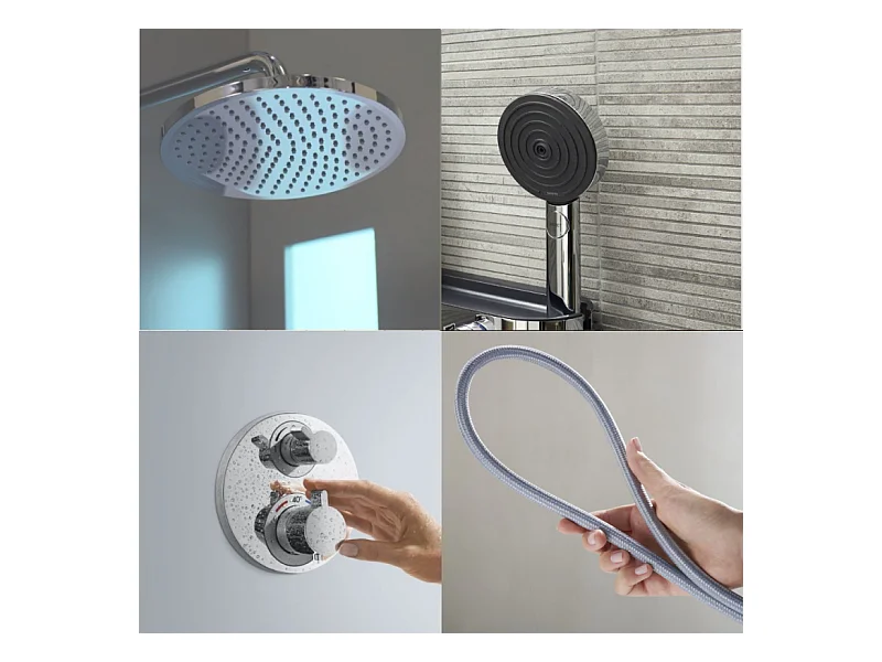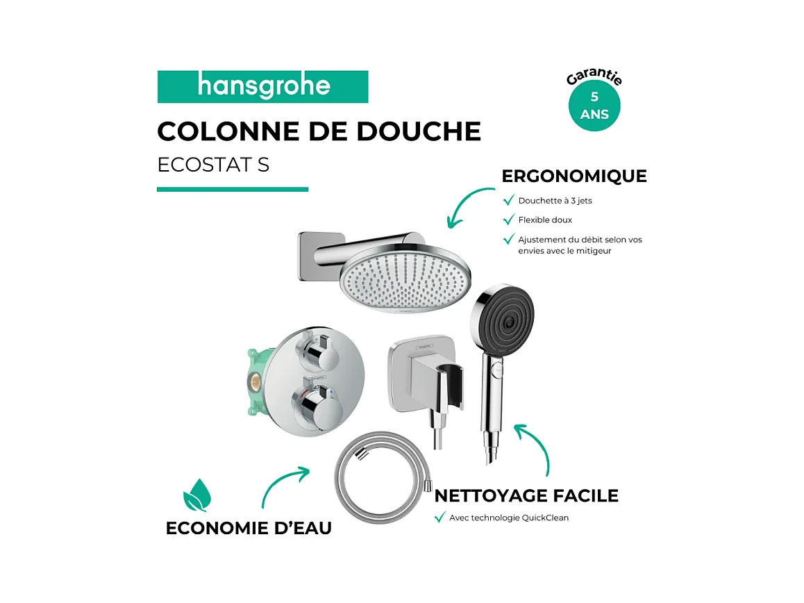 Colonne de douche thermostatique HANSGROHE Ecostat S Douche de tête Crometta S Flexible Designflex Douchette Pulsify chromé
