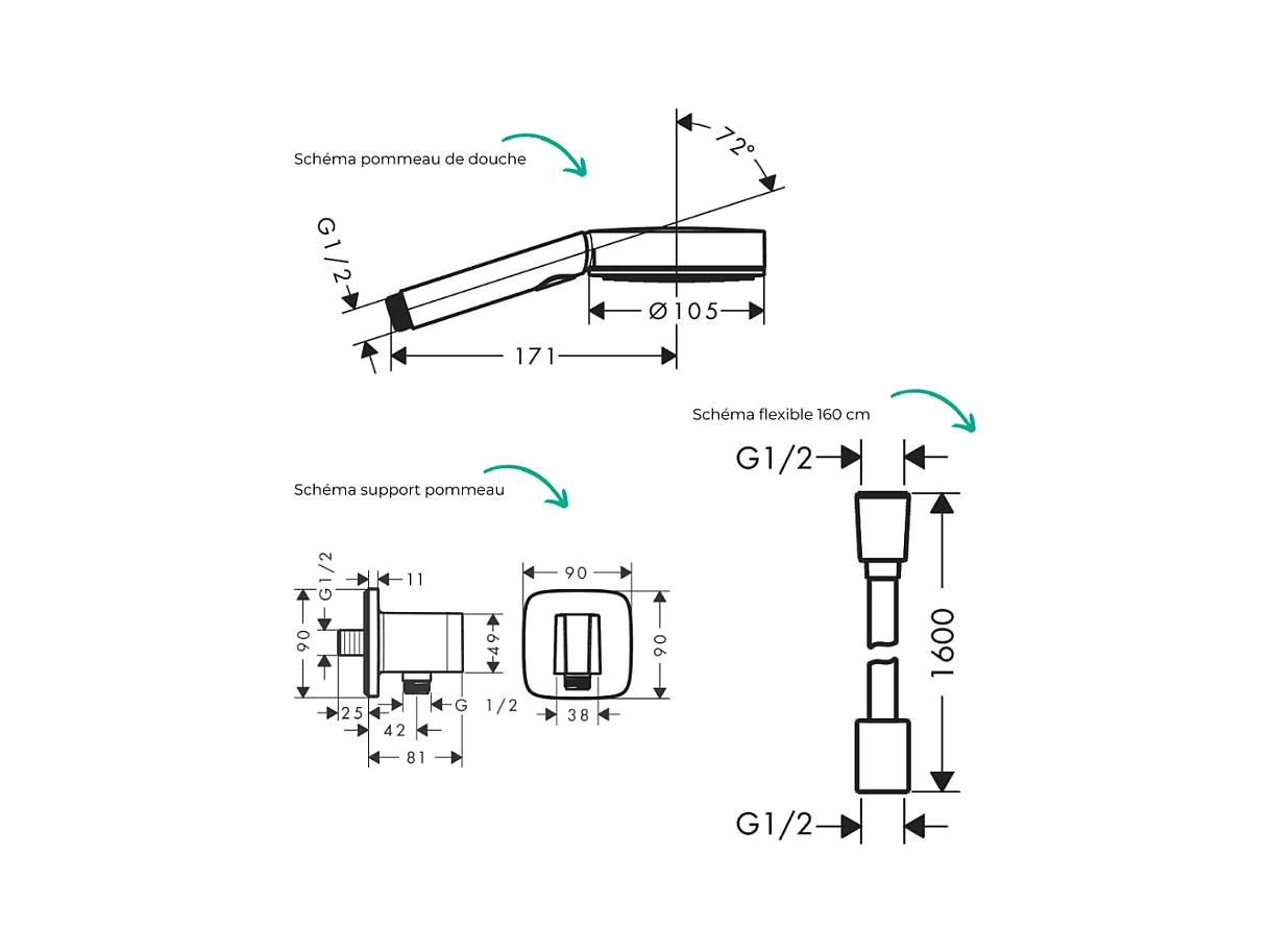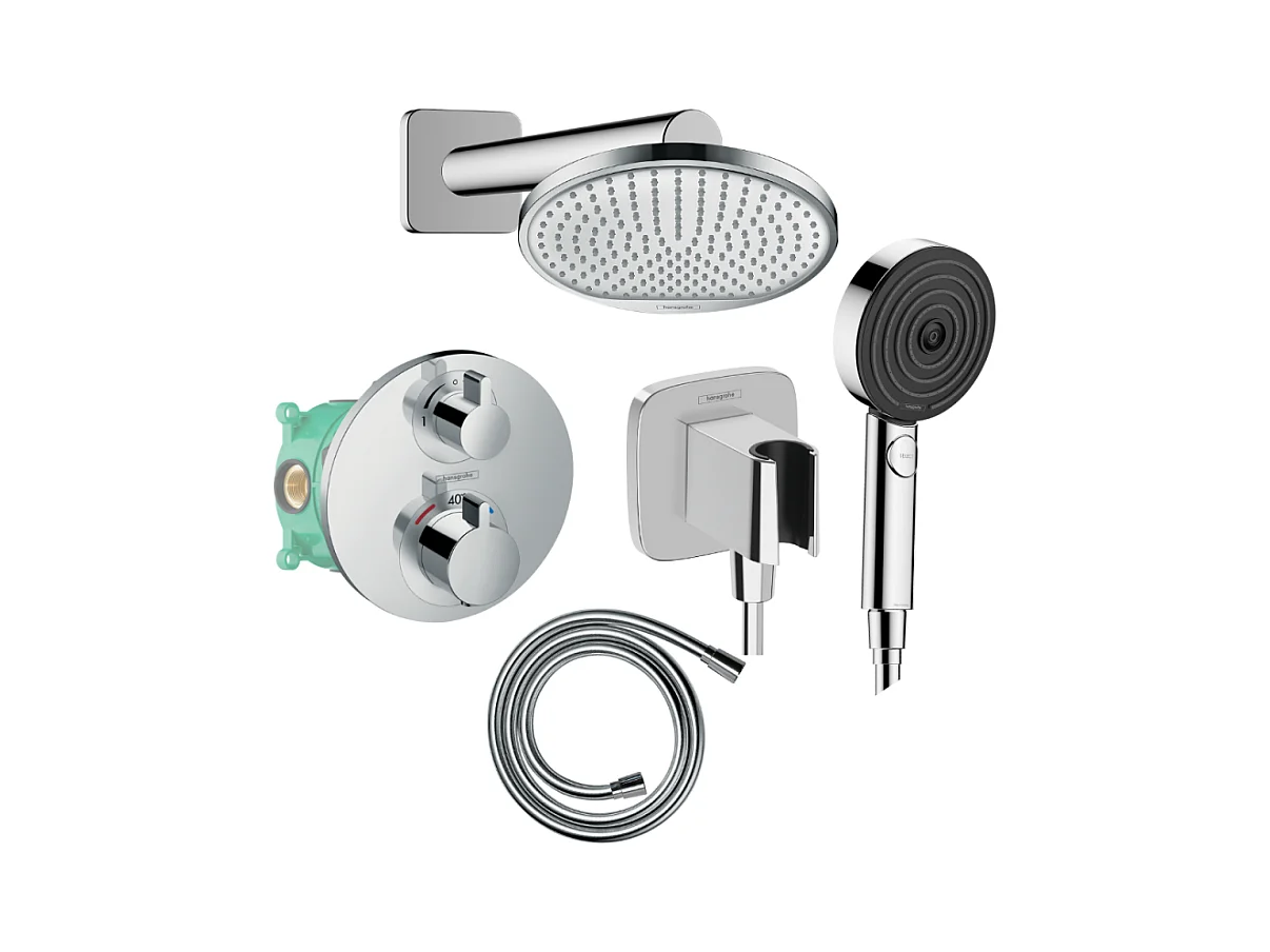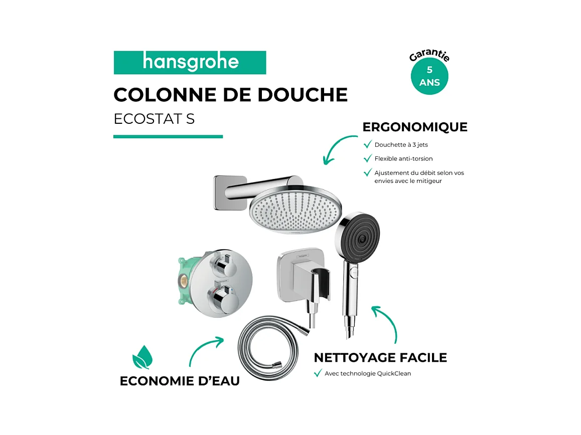 Colonne de douche thermostatique HANSGROHE Ecostat S Douche de tête Crometta S Flexible Isiflex Douchette Pulsify chromé