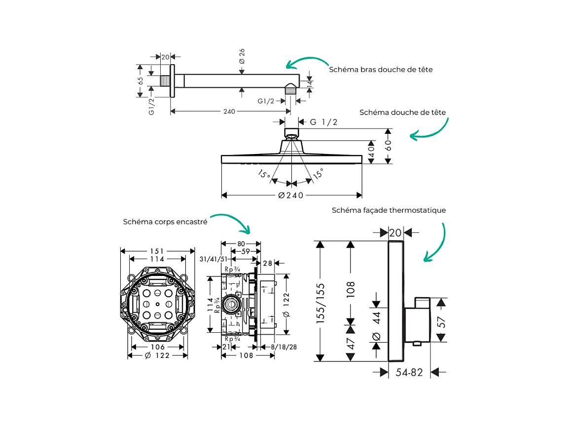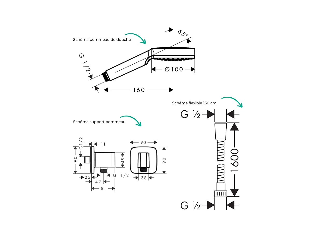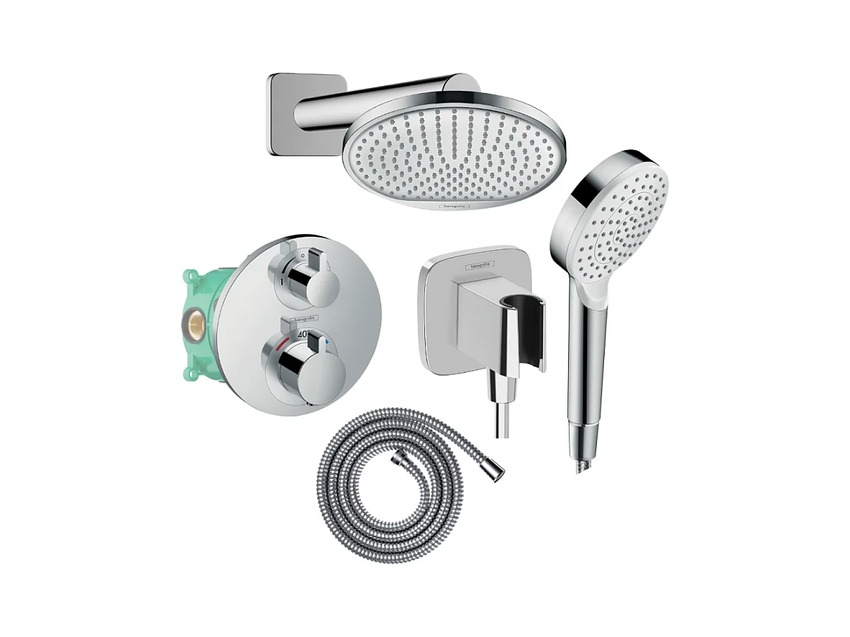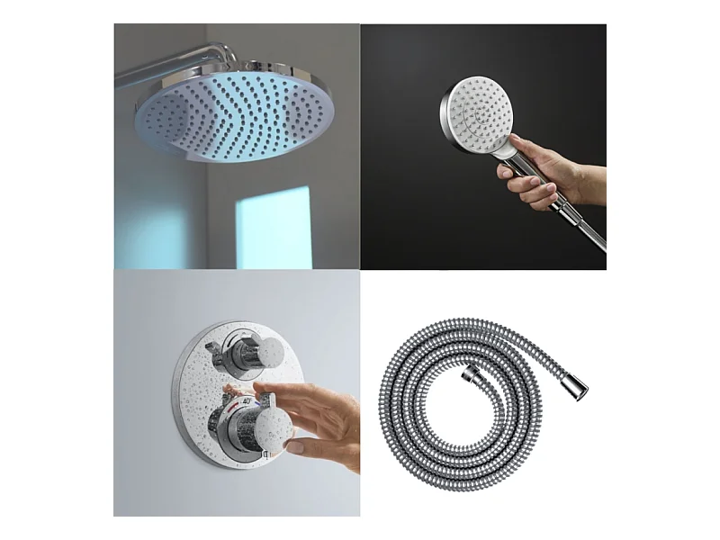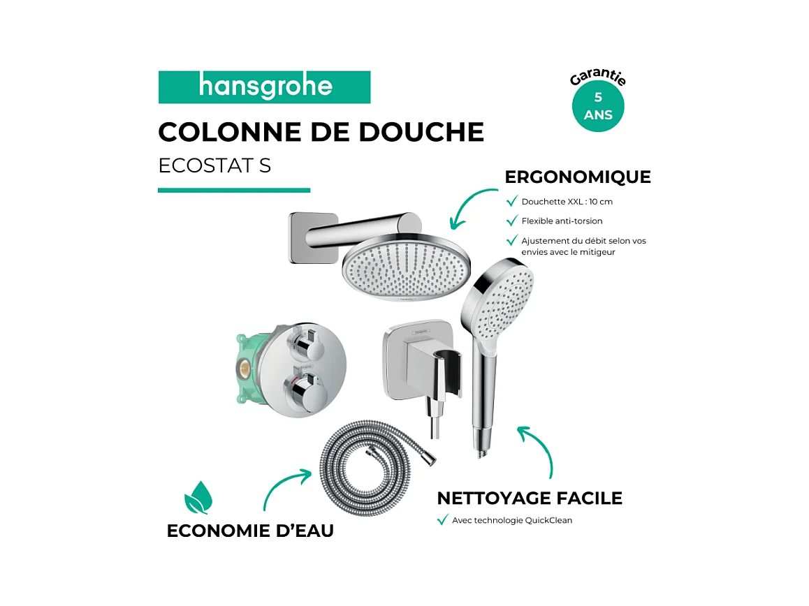 Colonne de douche thermostatique HANSGROHE Ecostat S Douche de tête Crometta S Flexible Metaflex Douchette Crometta chromé