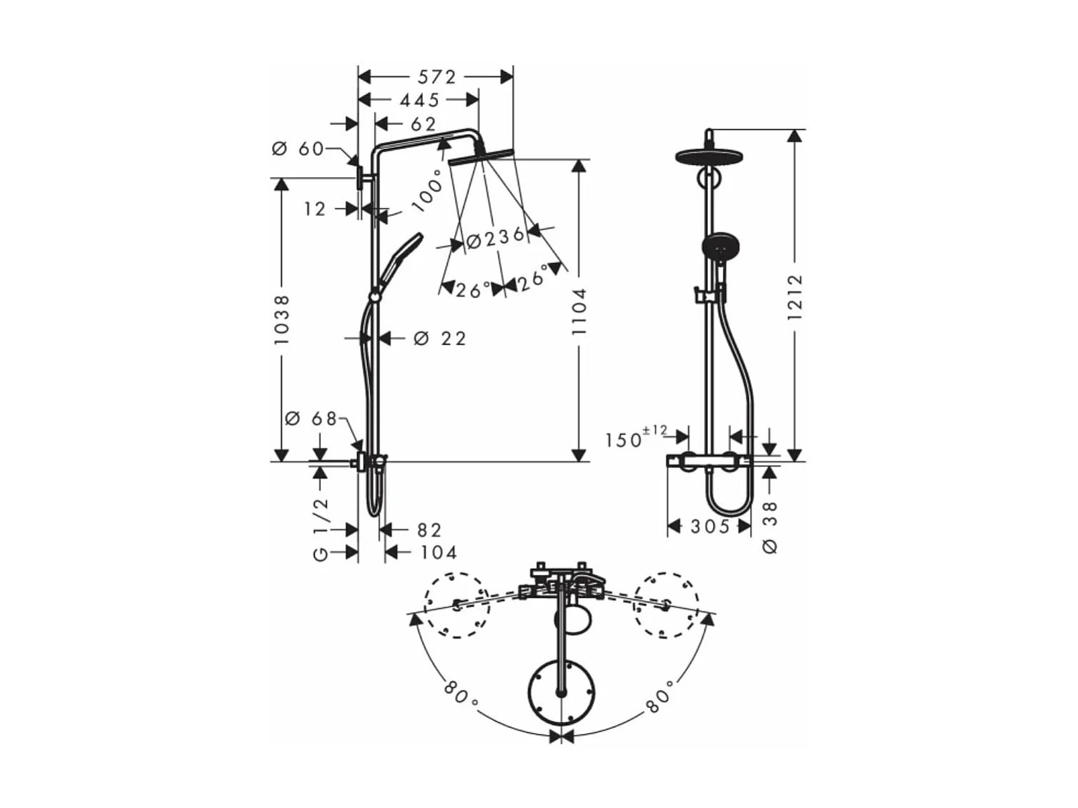 Colonne de douche thermostatique HANSGROHE Raidance S 240 EcoSmart chromé