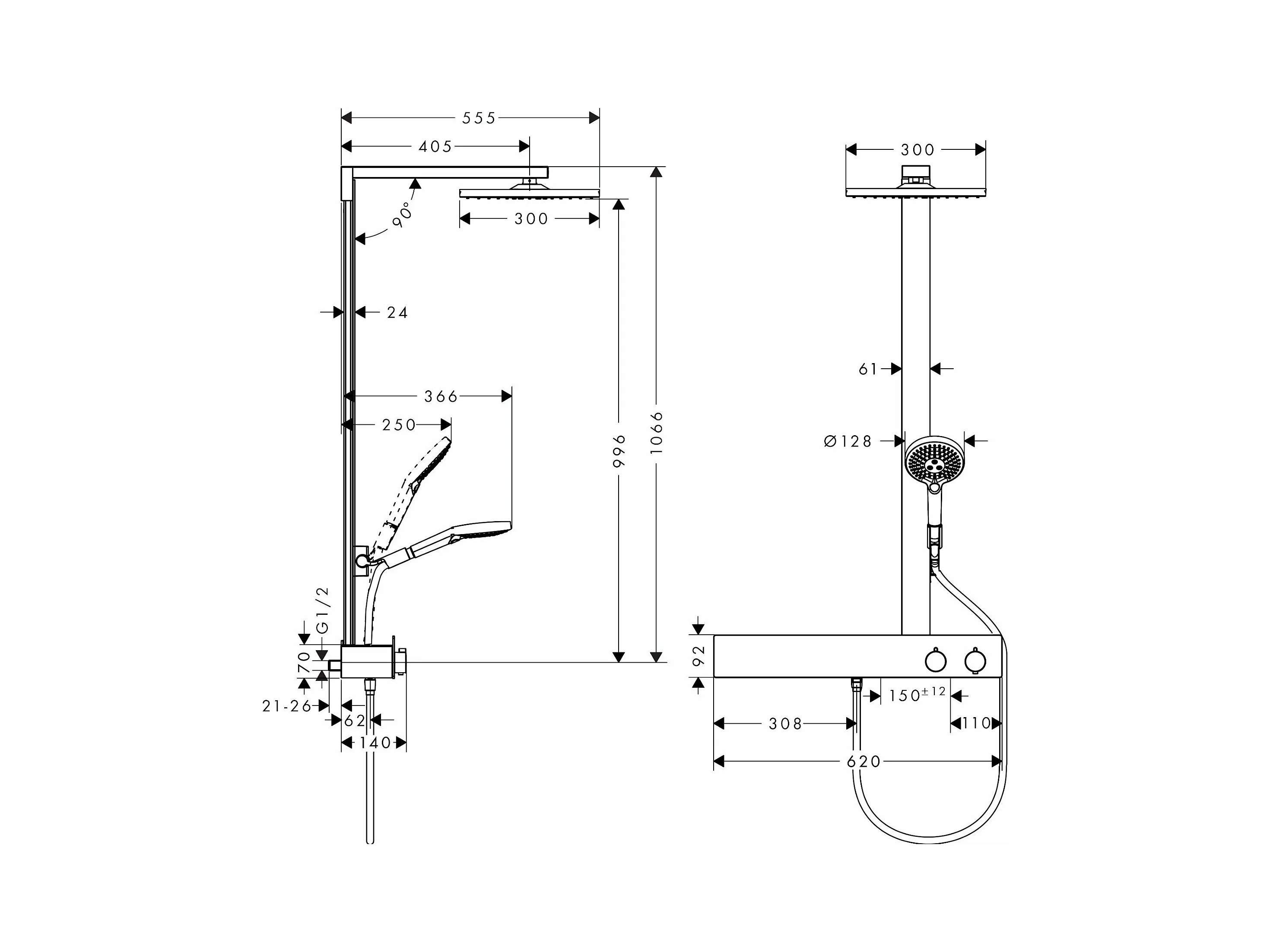 Colonne de douche thermostatique HANSGROHE Raindance E 300 avec mitigeur 60 cm chromé