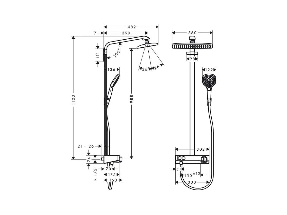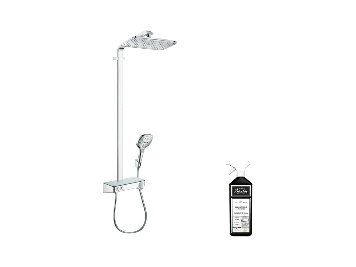 Colonne de douche thermostatique HANSGROHE Raindance E 360 avec mitigeur 30 cm blanc et chromée + nettoyant Briochin