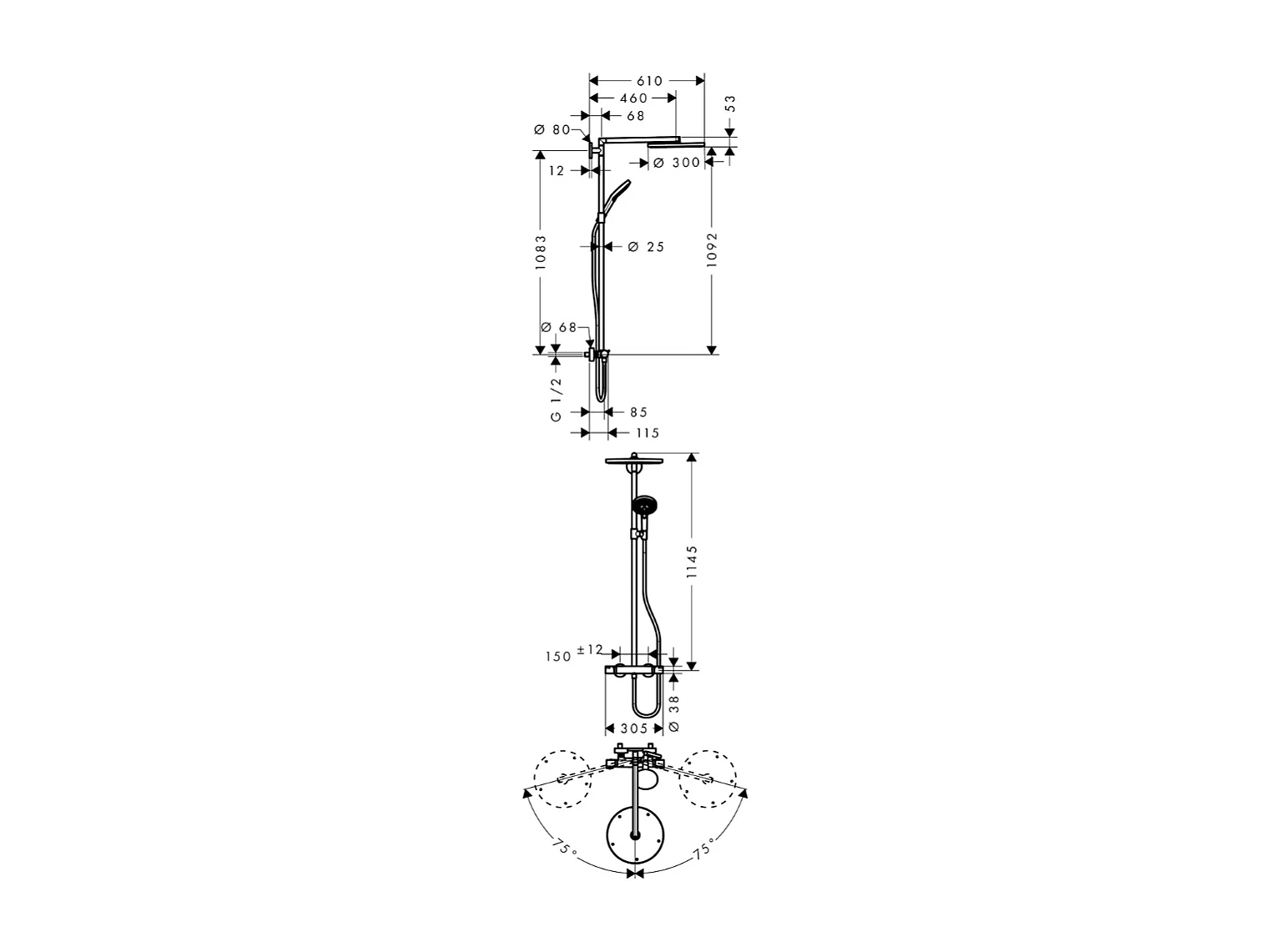 Colonne de douche thermostatique HANSGROHE Raindance S 300 chromé