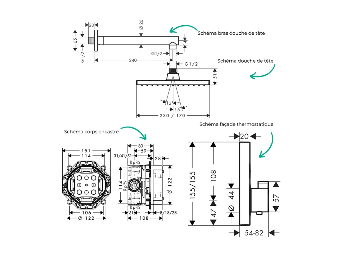 Colonne de douche thermostatique HANSGROHE ShowerSelect E Douche de tête Vernis Shape Flexible Designflex Douchette Pulsify chromé