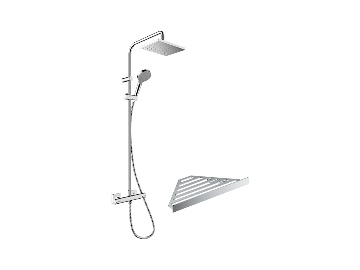 Colonne de douche thermostatique HANSGROHE Vernis Shape 230 chromé + tablette AddStoris
