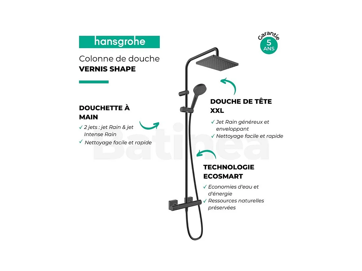 Colonne de douche thermostatique HANSGROHE Vernis Shape 230 EcoSmart noir mat + tablette AddStoris