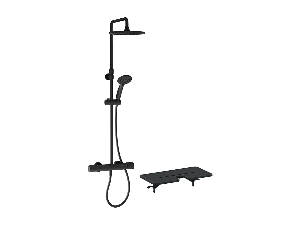 Colonne de douche thermostatique JACOB DELAFON Juliette noir mat + tablette de douche