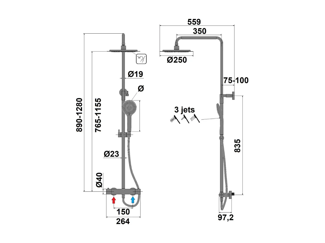 Colonne de douche thermostatique PAINI Ruby Ronde Chrome
