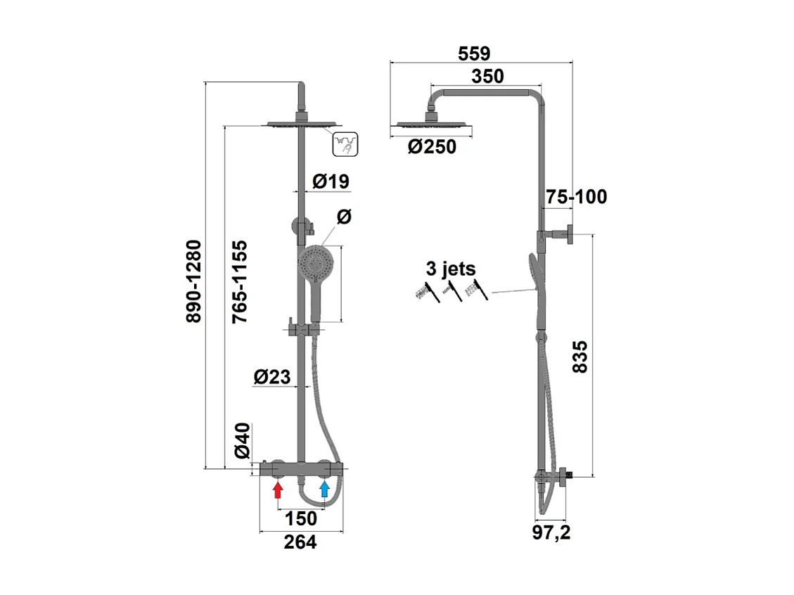Colonne de douche thermostatique PAINI Ruby Ronde Noir Mat