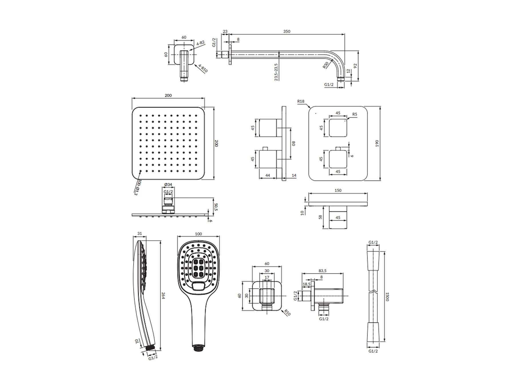 Colonne de douche thermostatique PARMA encastrable chrome/blanc