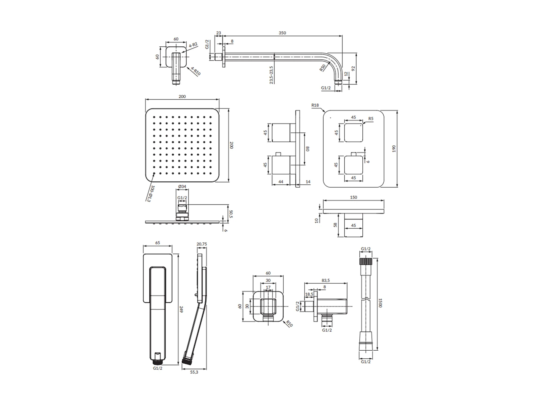 Colonne de douche thermostatique PARMA encastrable graphite