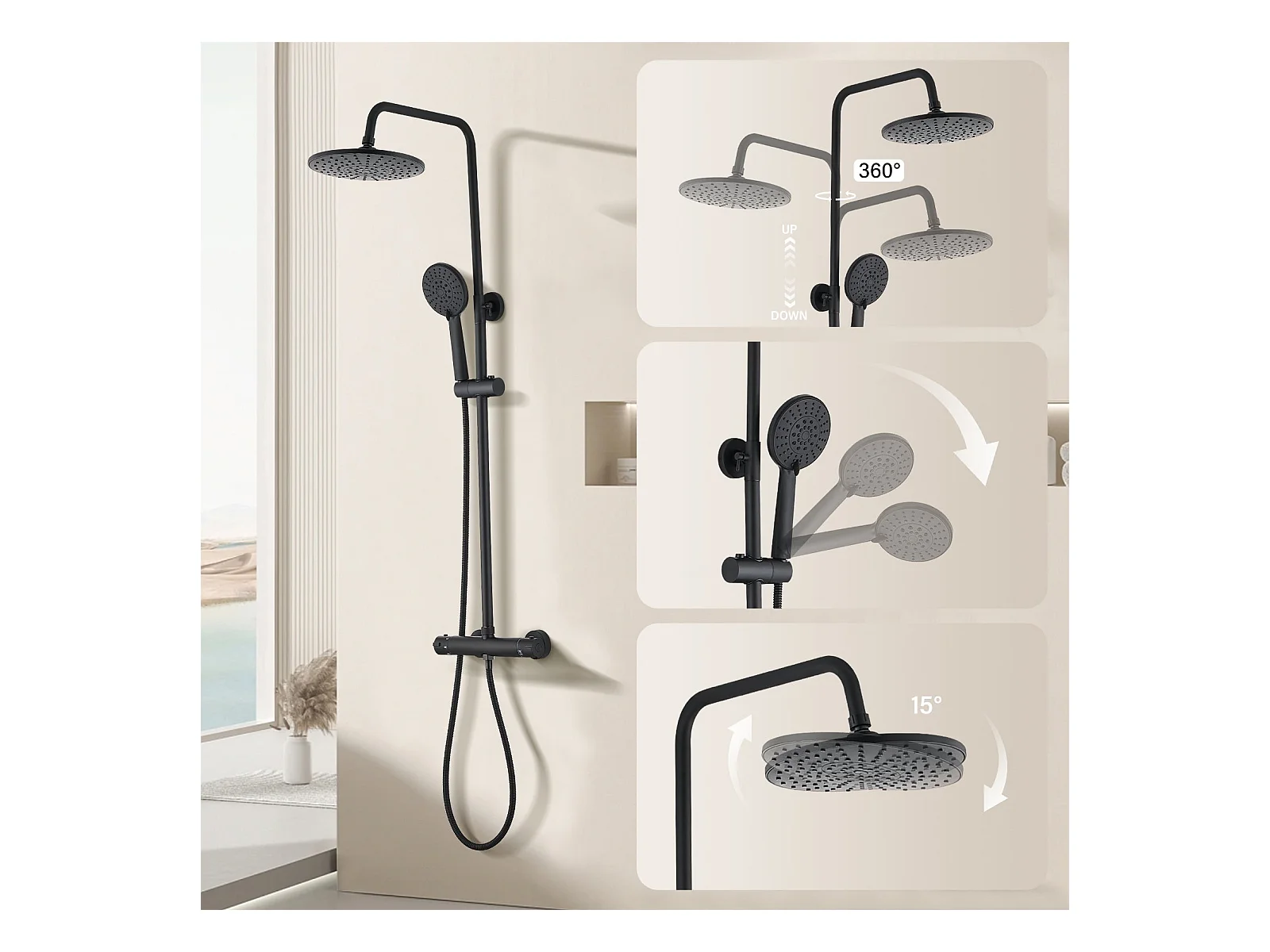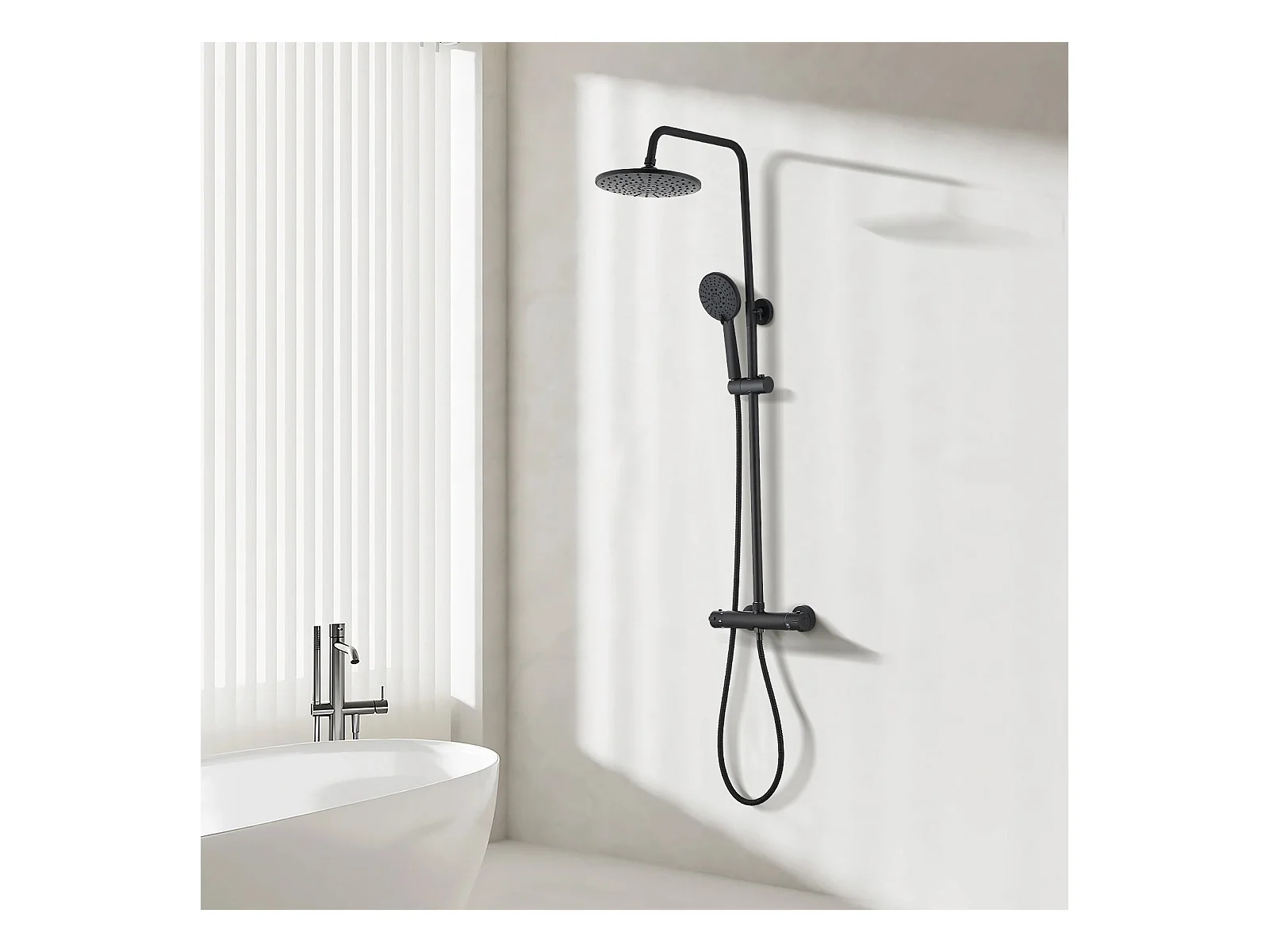 Colonne de Douche Noir avec Mitigeur Thermostatique 2 Fonctions Ensemble de Douche avec Douchette de tête de 10 pouces Haute Réglable 80-120 cm