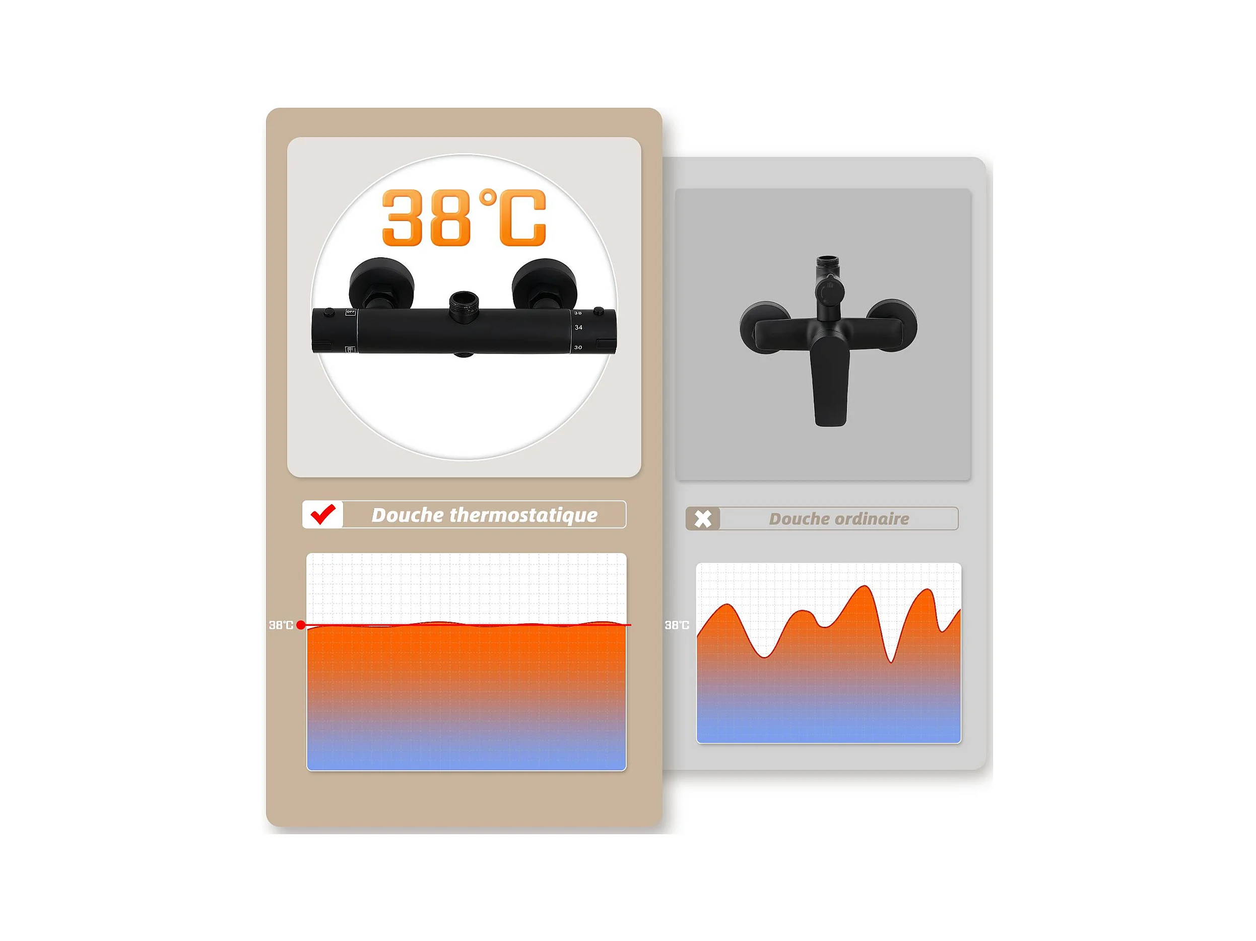 Colonne de douche thermostatique, Système de douche thermostatique 38°C, Noir