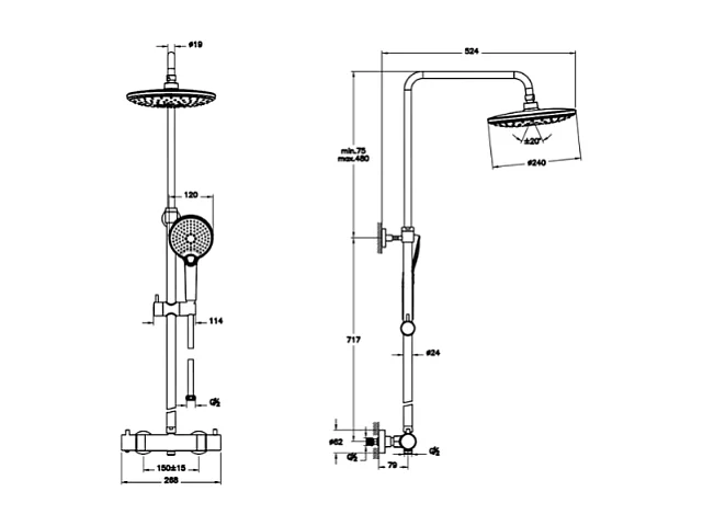 Colonne de douche thermostatique VITRA Aquaheat Bliss 240 2F noir mat