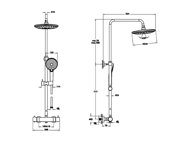 Colonne de douche thermostatique VITRA Aquaheat Bliss 240 2F noir mat + nettoyant