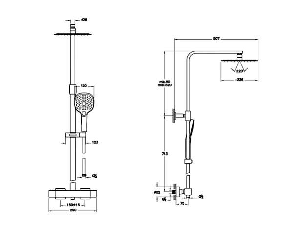Colonne de douche VITRA Aquaheat Bliss S 230