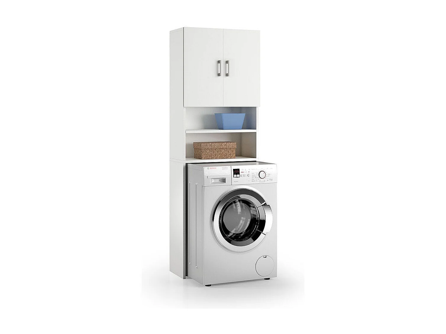 Colonne De Lavage Blanche Au-Dessus De La Machine À Laver Avec Armoire