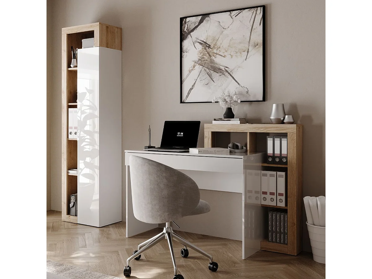 Colonne de rangement avec étagères blanc laqué et aspect bois finition Cadiz - ARTURO