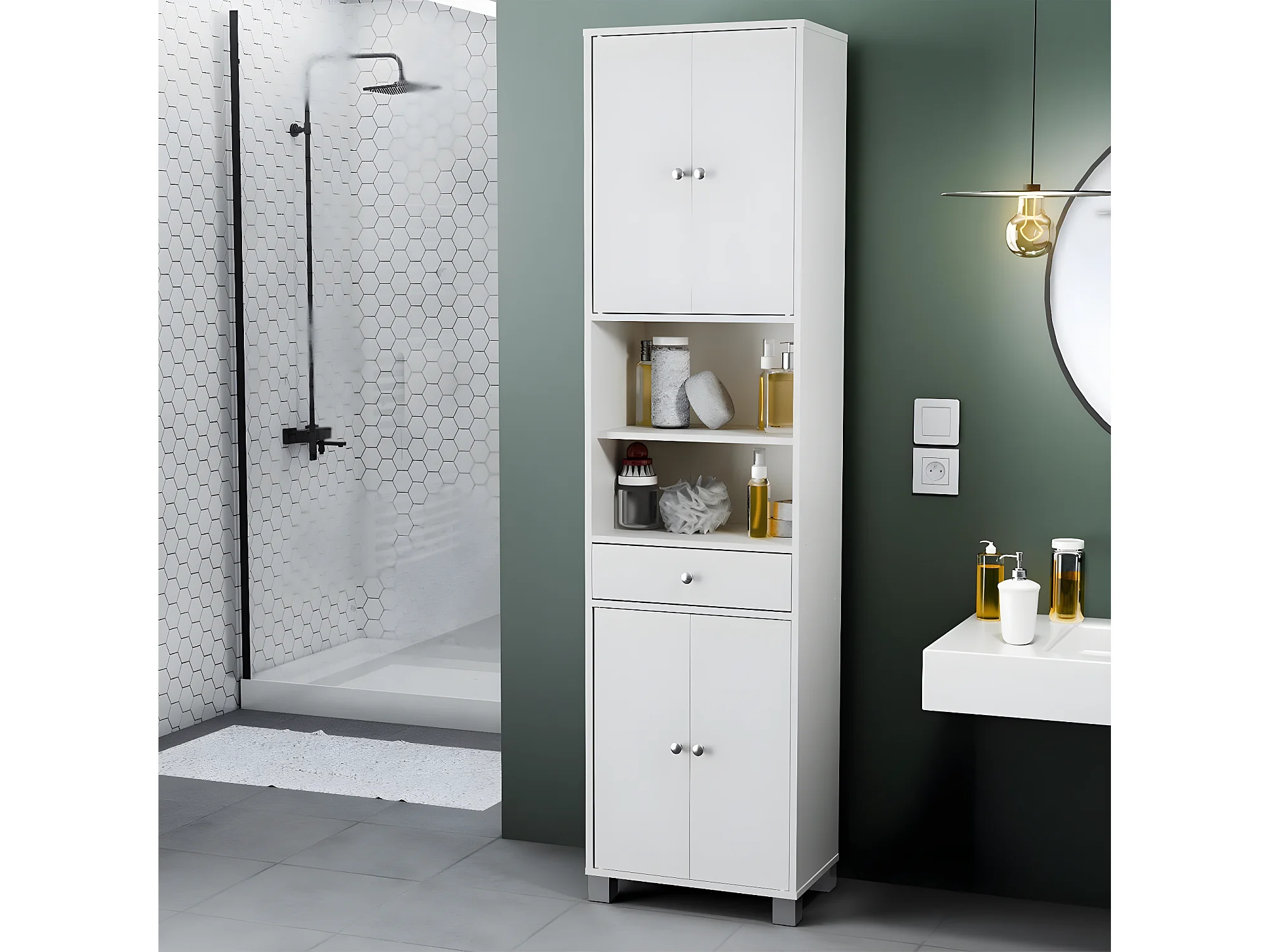 Colonne de salle de bain 4 Portes 1 Tiroir et Niches L50,5 cm Blanc - Bikini